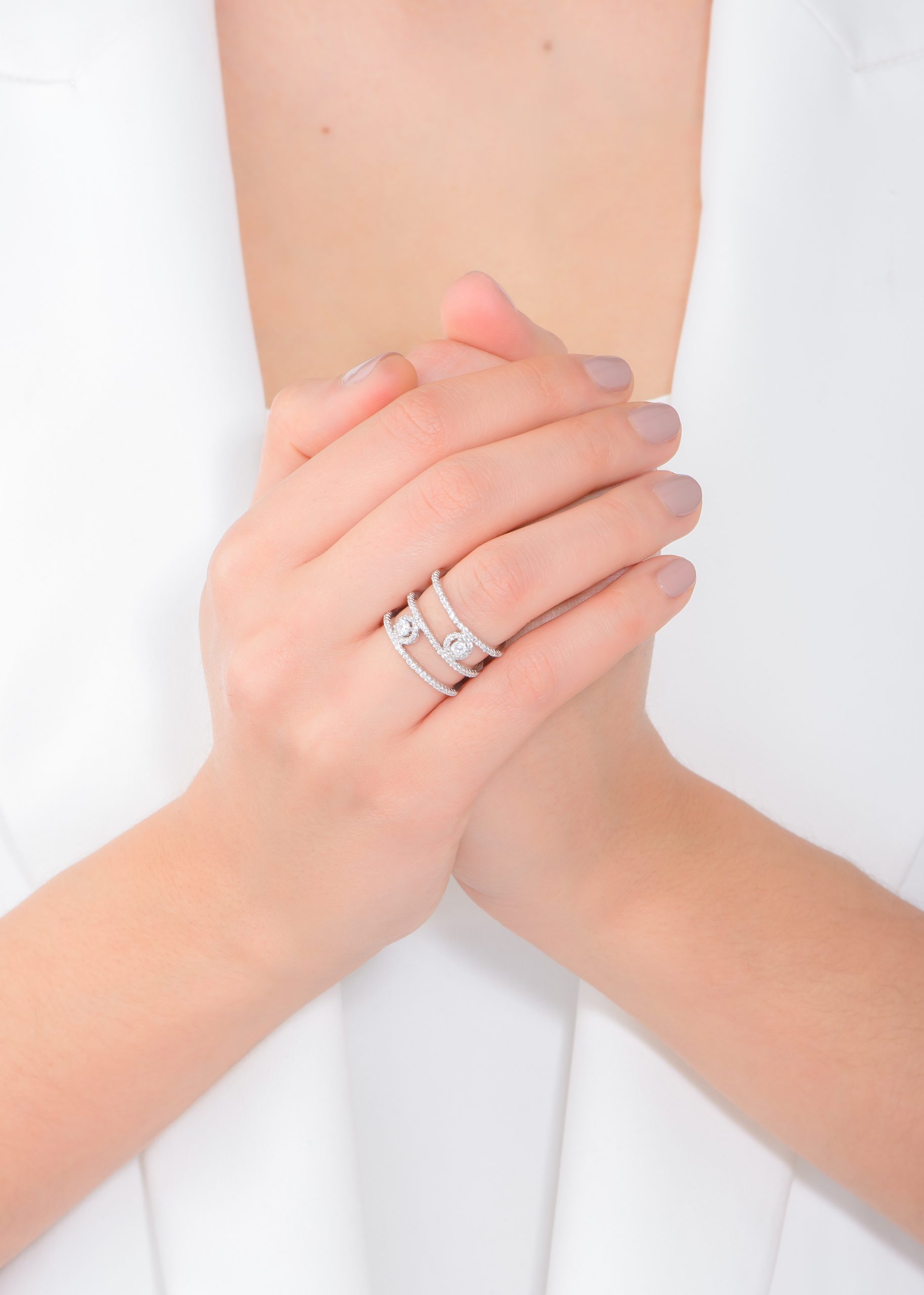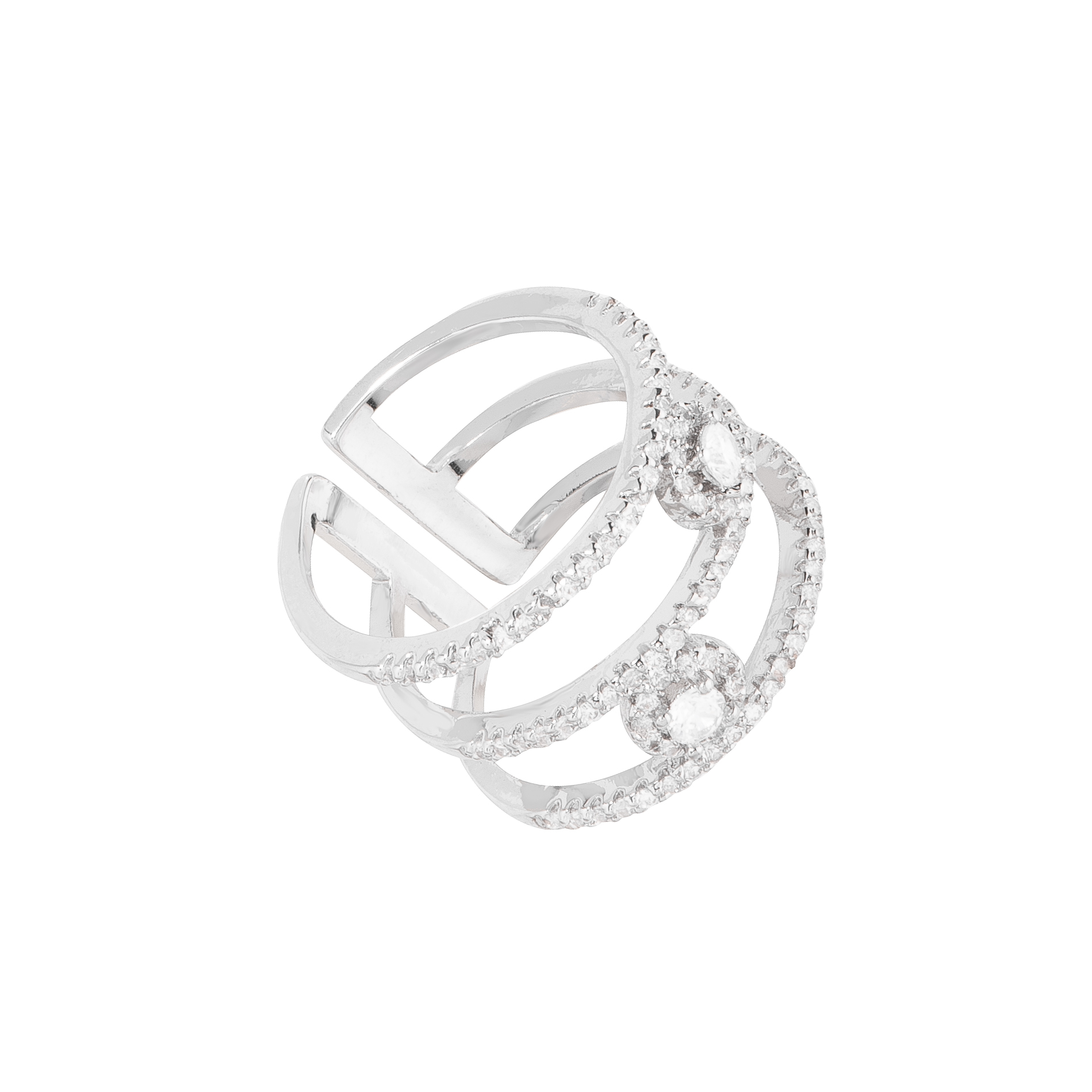 ANILLO AJUSTABLE EN BAÑO DE PLATINO CON DIAMONICE COLOR CRISTAL