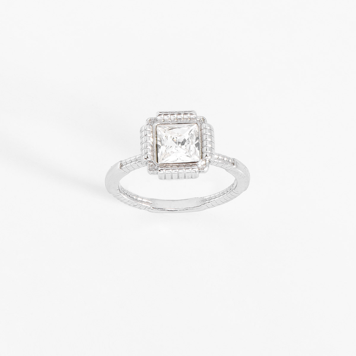 ANILLO EN BAÑO DE BRONCE BLANCO CON PIEDRA DE COLOR CRISTAL MEDIDA 6