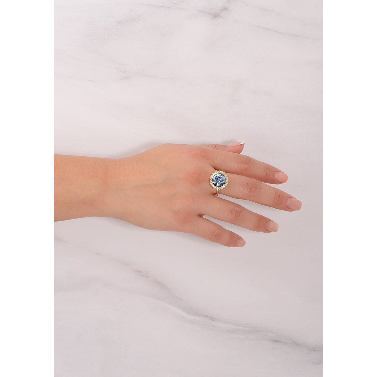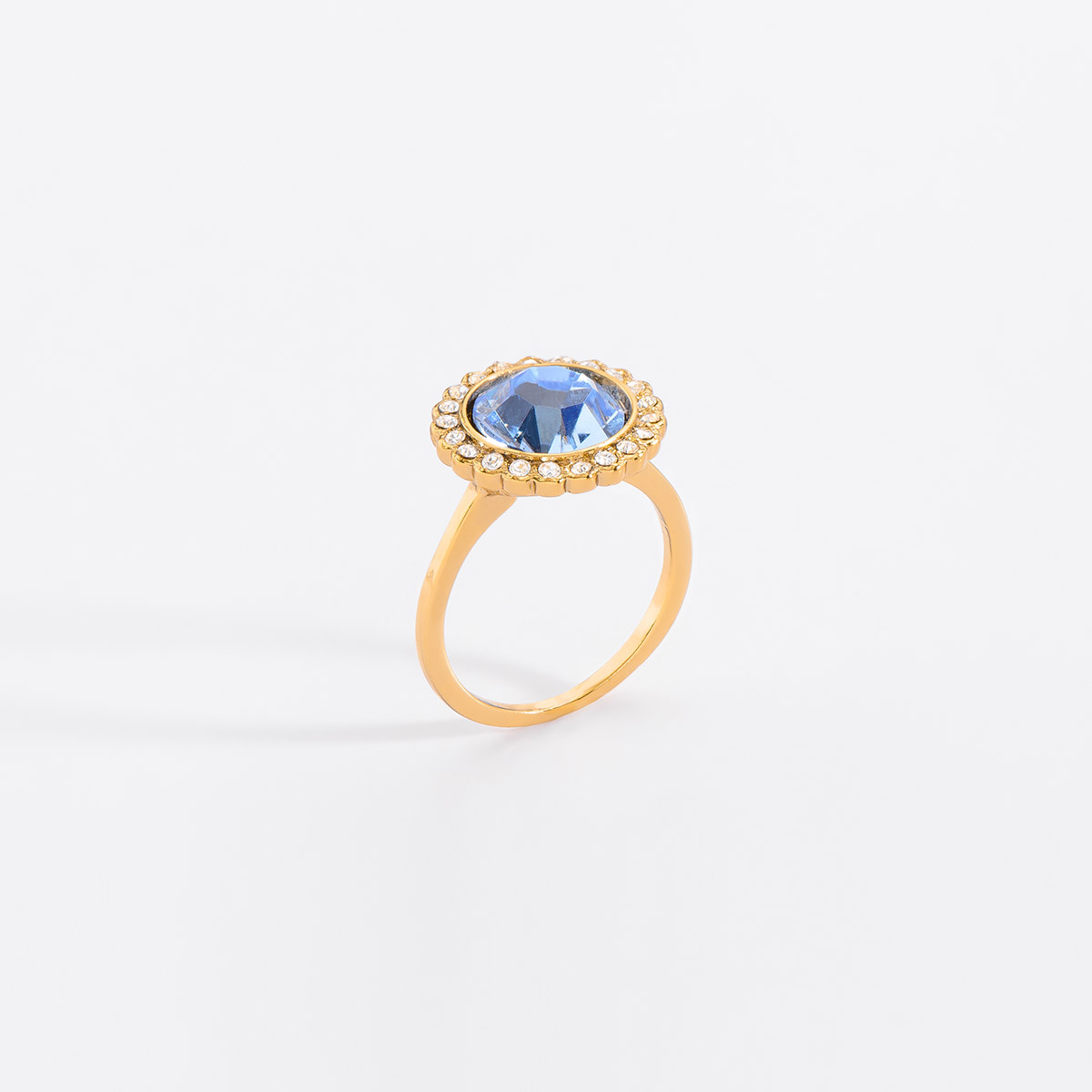 ANILLO EN BAÑO DE ORO CON PIEDRA EN TONO LIGHT ZAFIRO MEDIDA 6 Tallas de 6 a 9