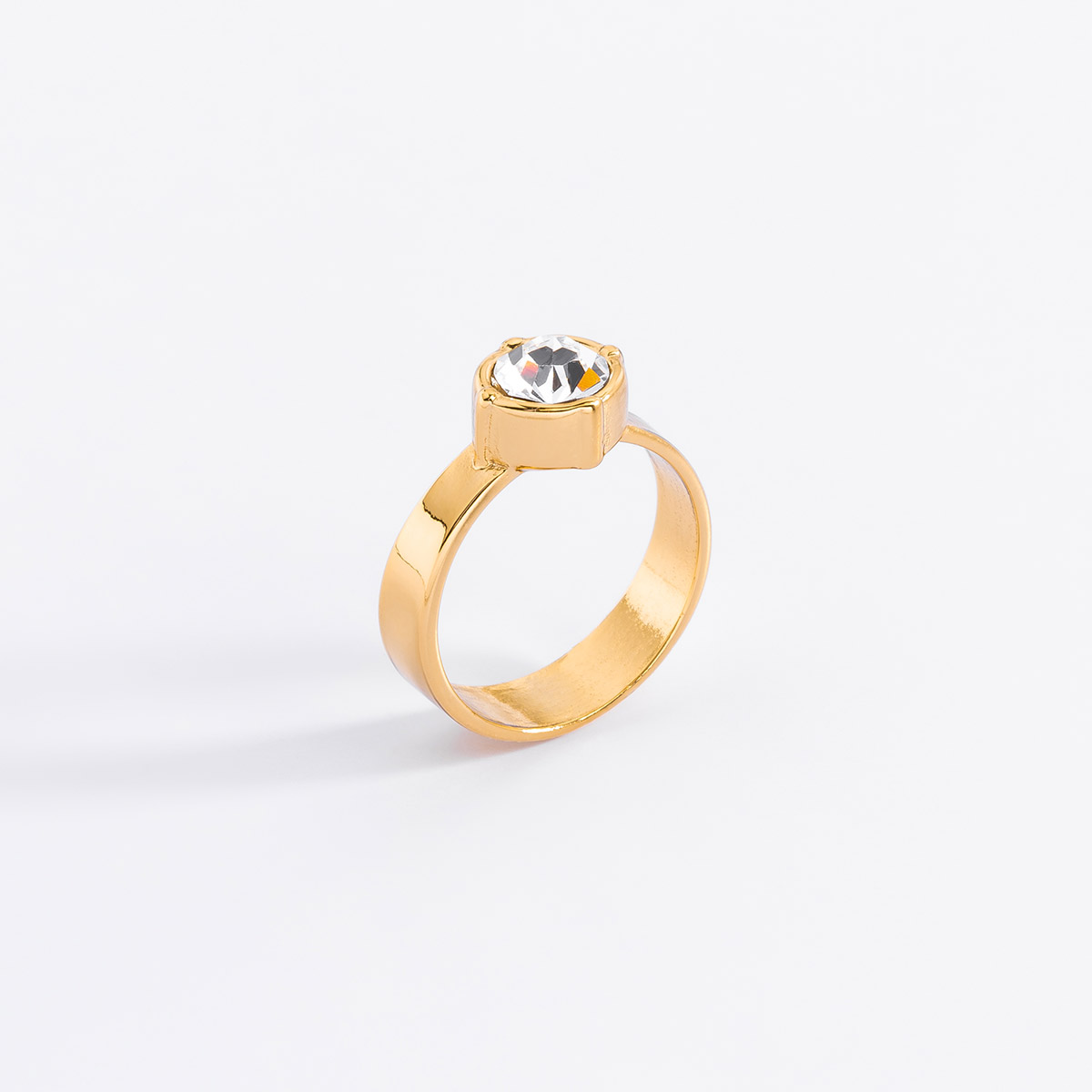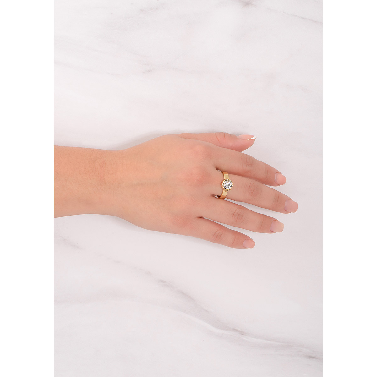 ANILLO EN BAÑO DE ORO CON PIEDRA EN TONO CRISTAL MEDIDA 6 Tallas de 6 a 9