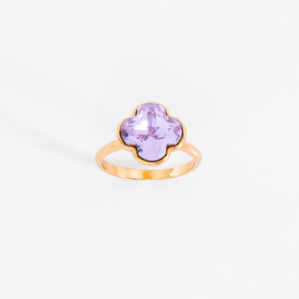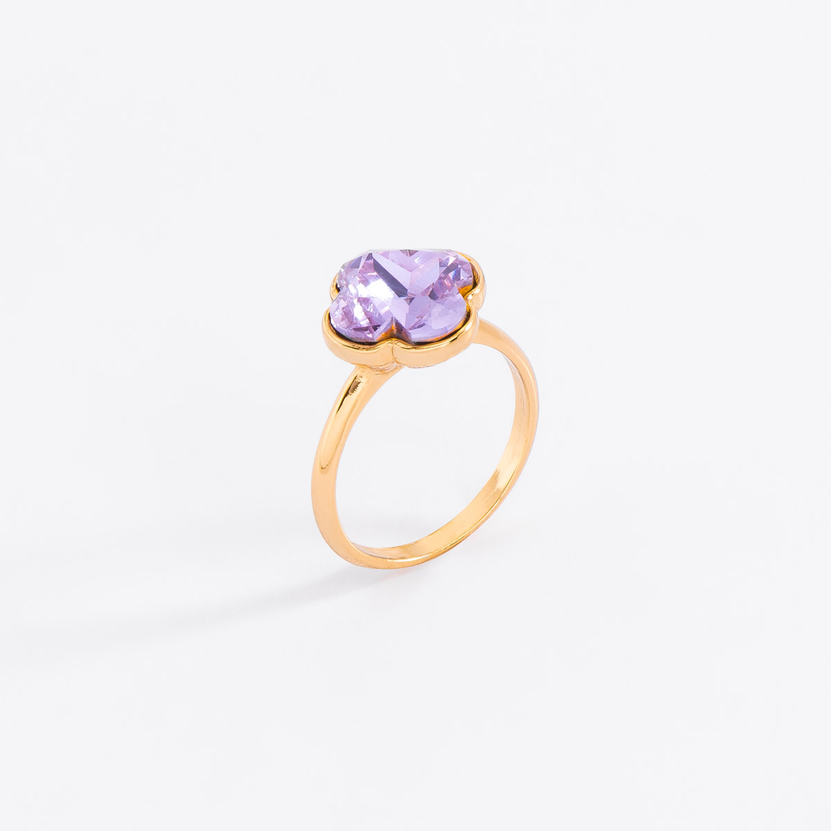 ANILLO EN BAÑO DE ORO CON PIEDRA COLOR LILA MEDIDA 6 Tallas de 6 a 9
