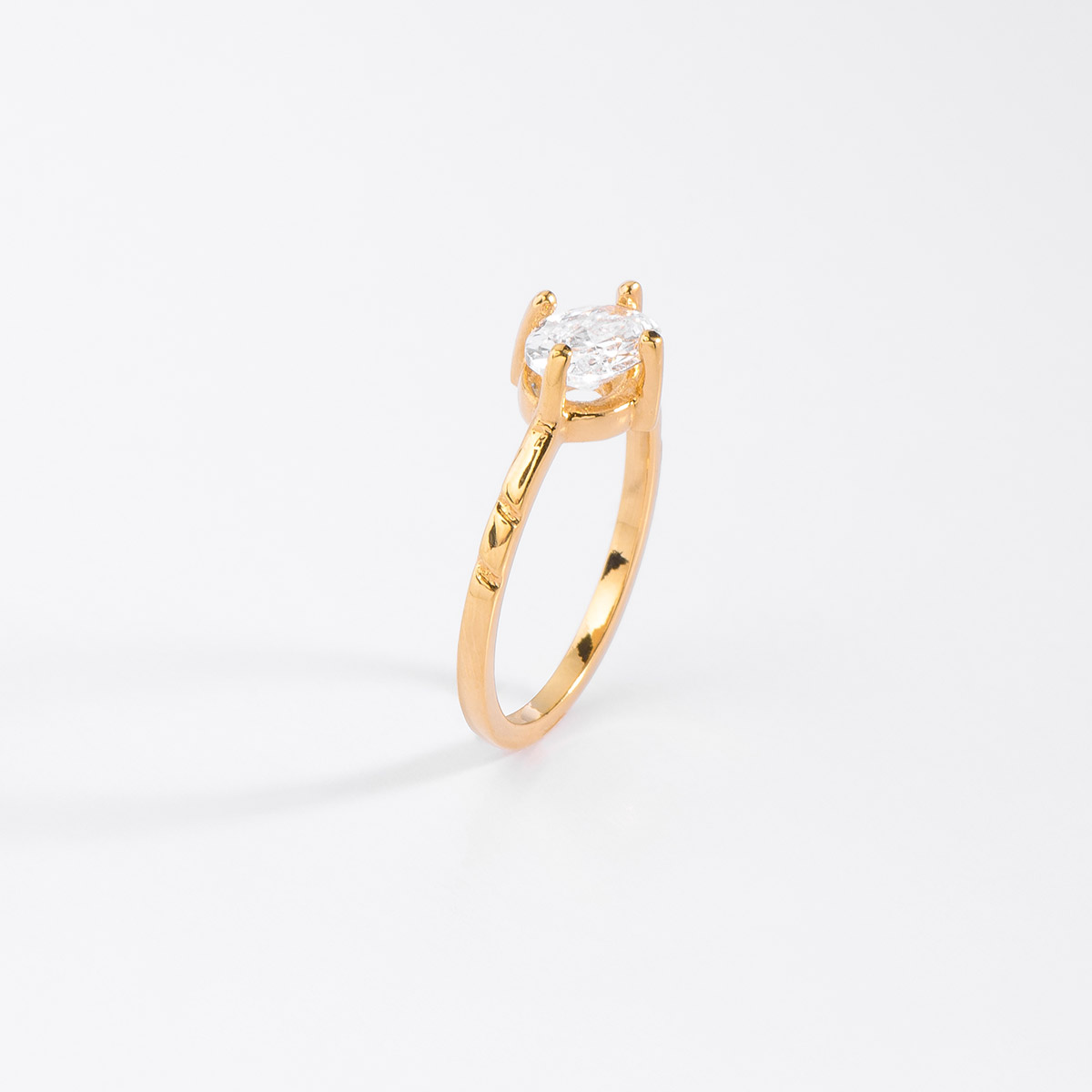 ANILLO EB BAÑO DE ORO CON PIEDRA DIAMONICE EN TONO CRISTAL MEDIDA 6