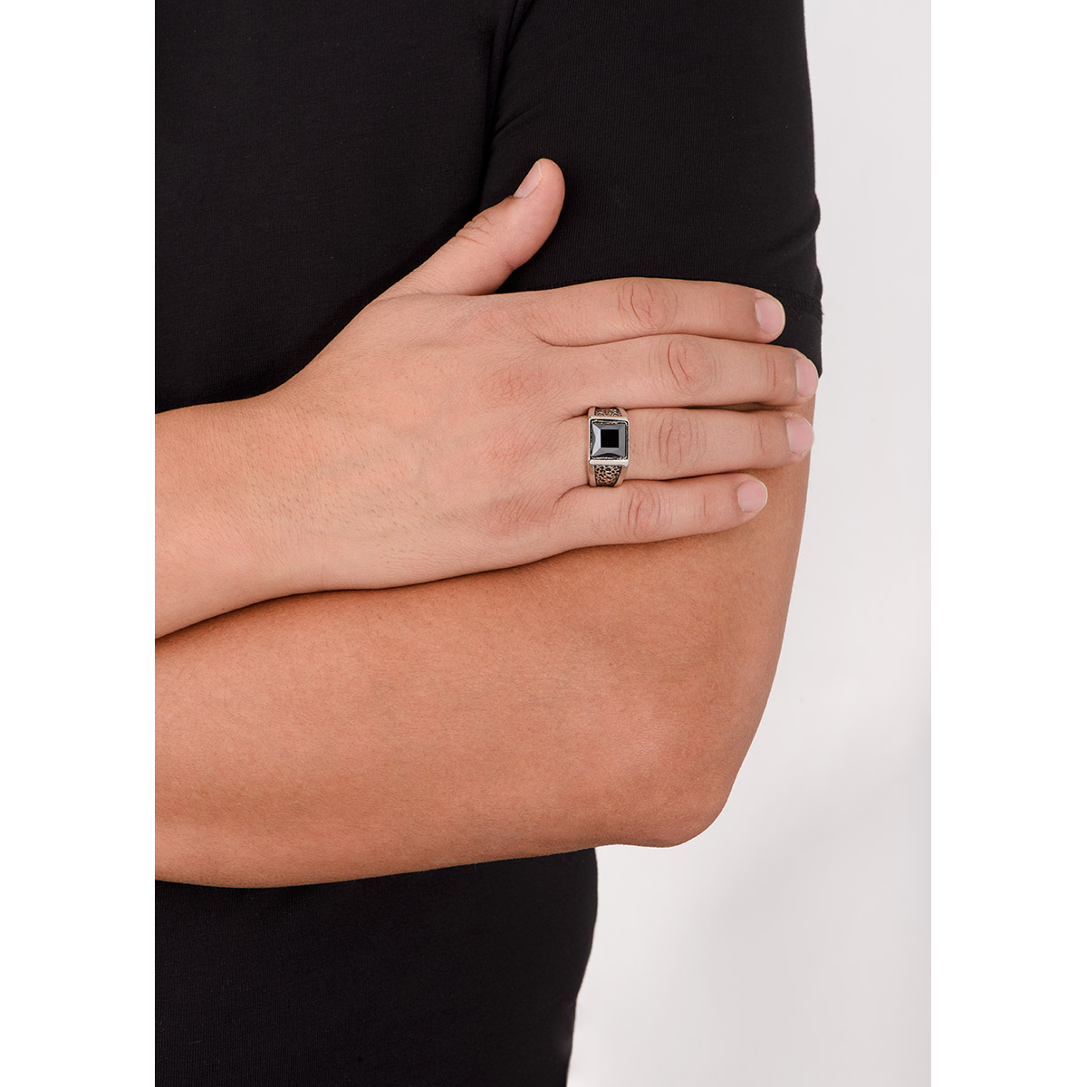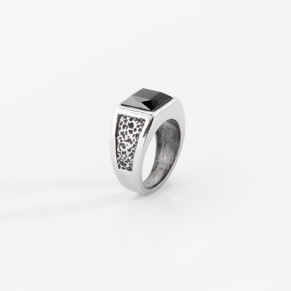 ANILLO EN BAÑO EN PLATINO, FILIGRANA Y PIEDRA EN TONO JET HEMATITE MEDIDA 9
