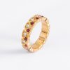 Anillo con medida del 6 al 9, en baño de oro, con piedras en tono cristal y tono rojo.