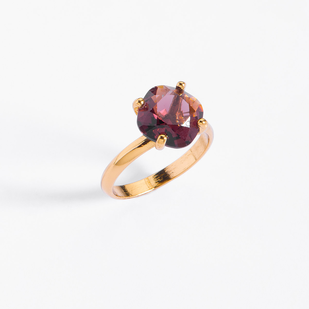 ANILLO EN BAÑO DE ORO CON PIEDRA COLOR BURGUNDY MEDIDA 6 Tallas de 6 a 9