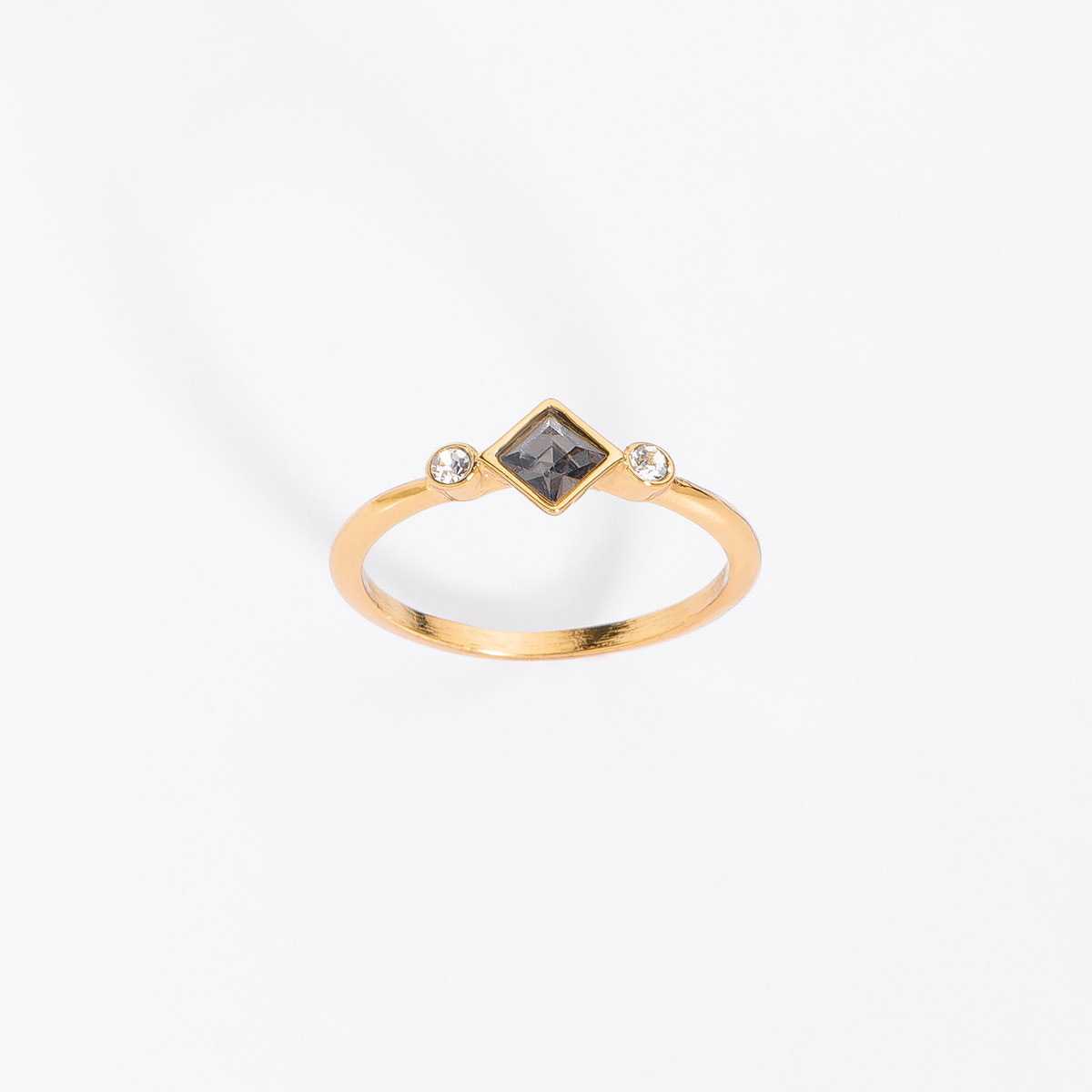 ANILLO EN BAÑO DE ORO CON PIEDRAS COLOR CRSITAL Y GRIS MEDIDA 8 Tallas 8 y 9