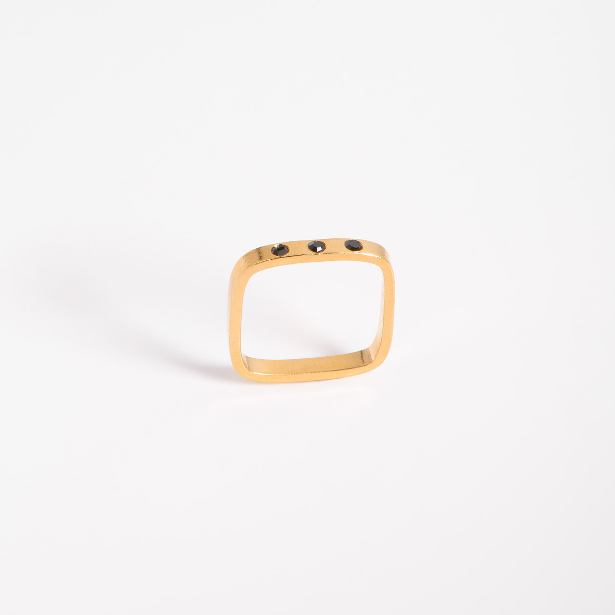 ANILLO EN BAÑO DE ORO CON PIEDRAS COLOR JET MEDIDA 6 Tallas 6 – 7 – 8 – 10