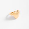 Anillo en baño de oro con un atractivo corazón al centro, perfecto para quienes buscan un accesorio contemporáneo y llamativo. Su acabado envolvente y superficie brillante lo convierten en una pieza versátil, ideal para sumar un toque moderno y lleno de carácter a estilos casuales o sofisticados.