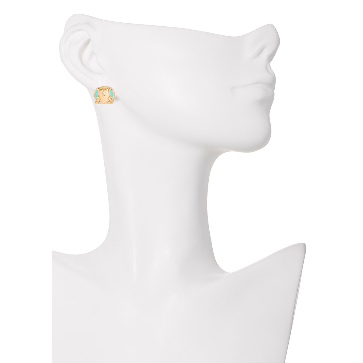 No dejes de saltar con estos divertidos aretes en baño de oro en forma de conejito, con orejas resaltantes en color verde menta.