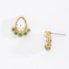 ARETES CON POSTE EN BAÑO DE ORO CON PIEDRA GOTA EN TONO CRISTAL Y PIEDRAS COLOR ESMERALDA