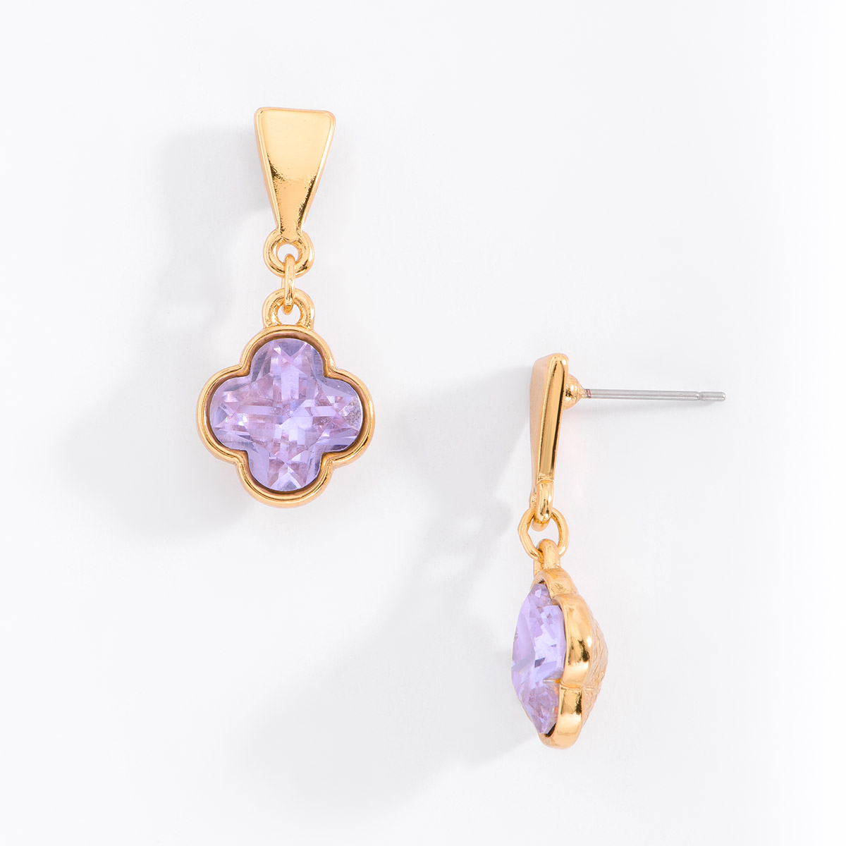 ARETES CON POSTE EN BAÑO DE ORO CON PIEDRA EN TONO LILA