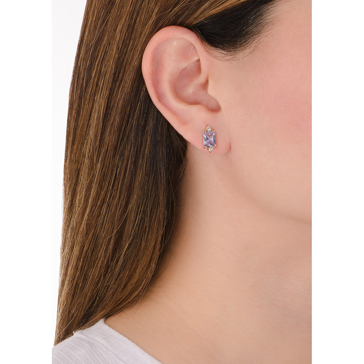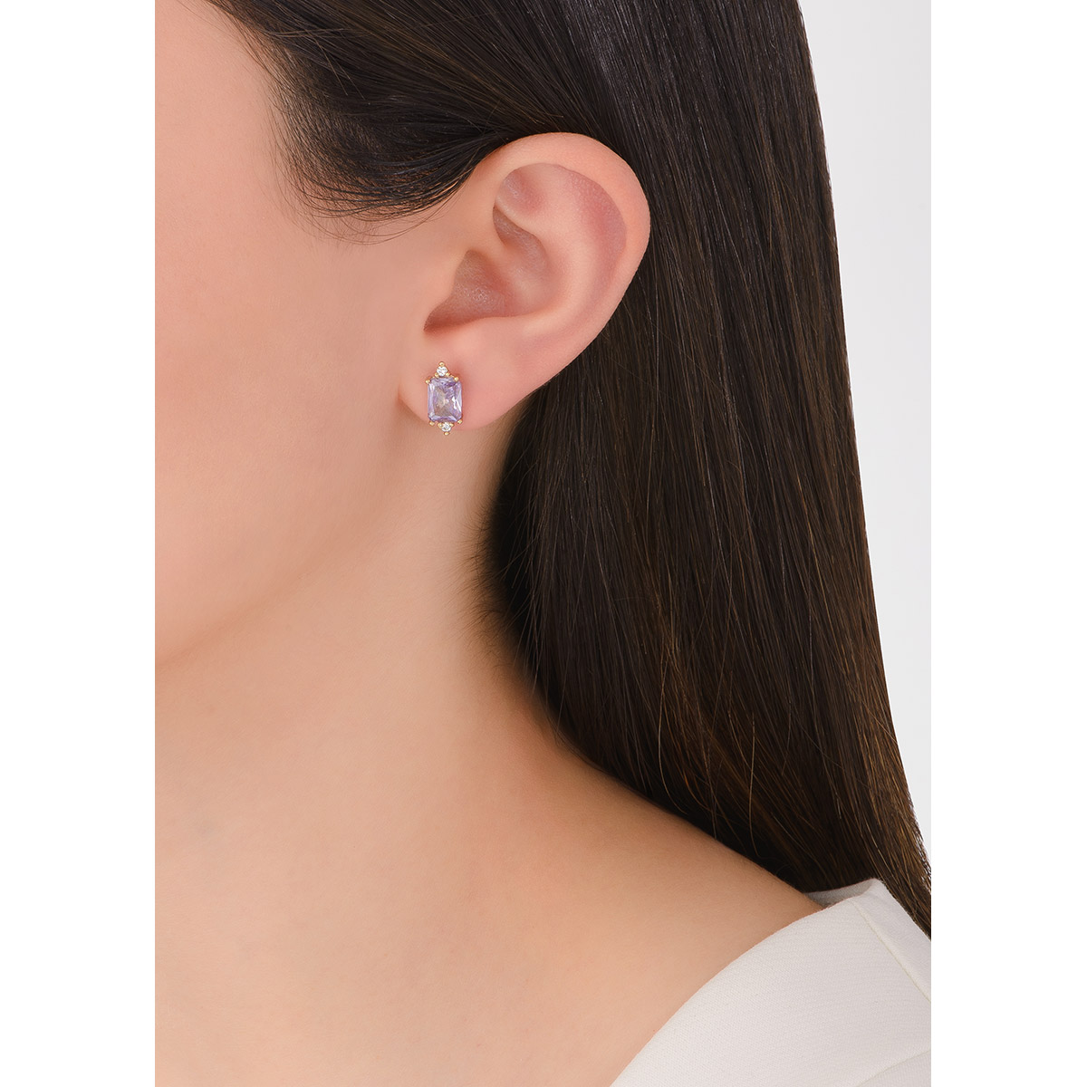 ARETES CON POSTE EN BAÑO DE ORO CON PIEDRA COLOR LAVANDA