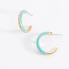 ARRACADA CON POSTE EN BAÑO DE ORO CON PIEDRA COLOR CRISTAL Y PINTURA EN TONO VERDE AGUA