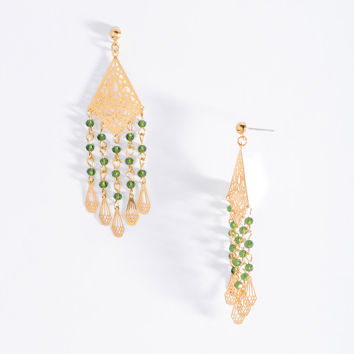 ARETES CON POSTE EN BAÑO DE ORO Y CUENTAS EN TONO VERDE