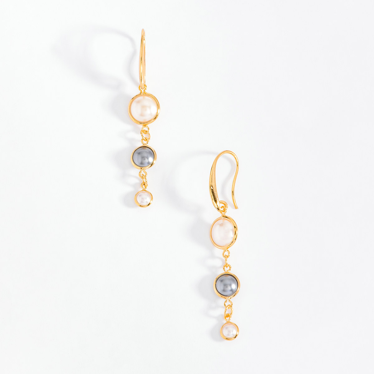 ARETES EN BAÑO DE ORO CON PERLA CHANEL EN TONO CREAM Y GRIS
