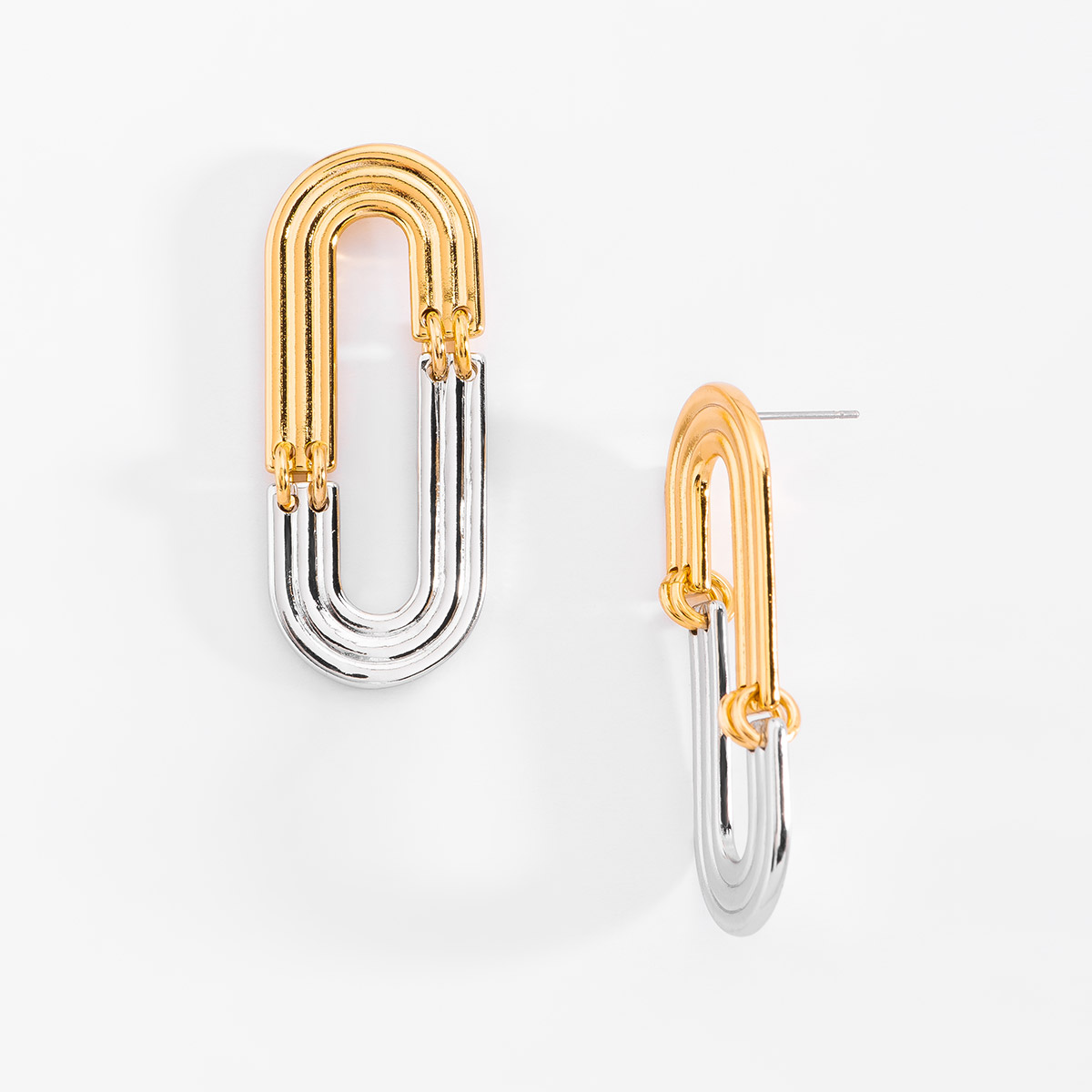 ARETES CON POSTE, LLEVA LADO EN BAÑO DE ORO Y BRONCE BLANCO