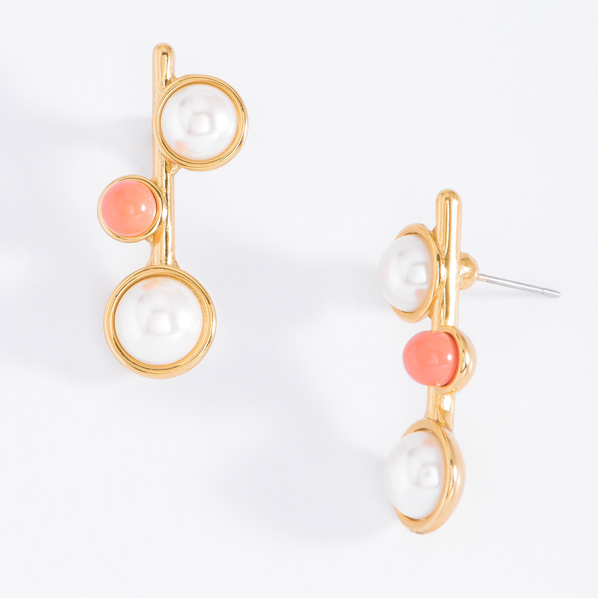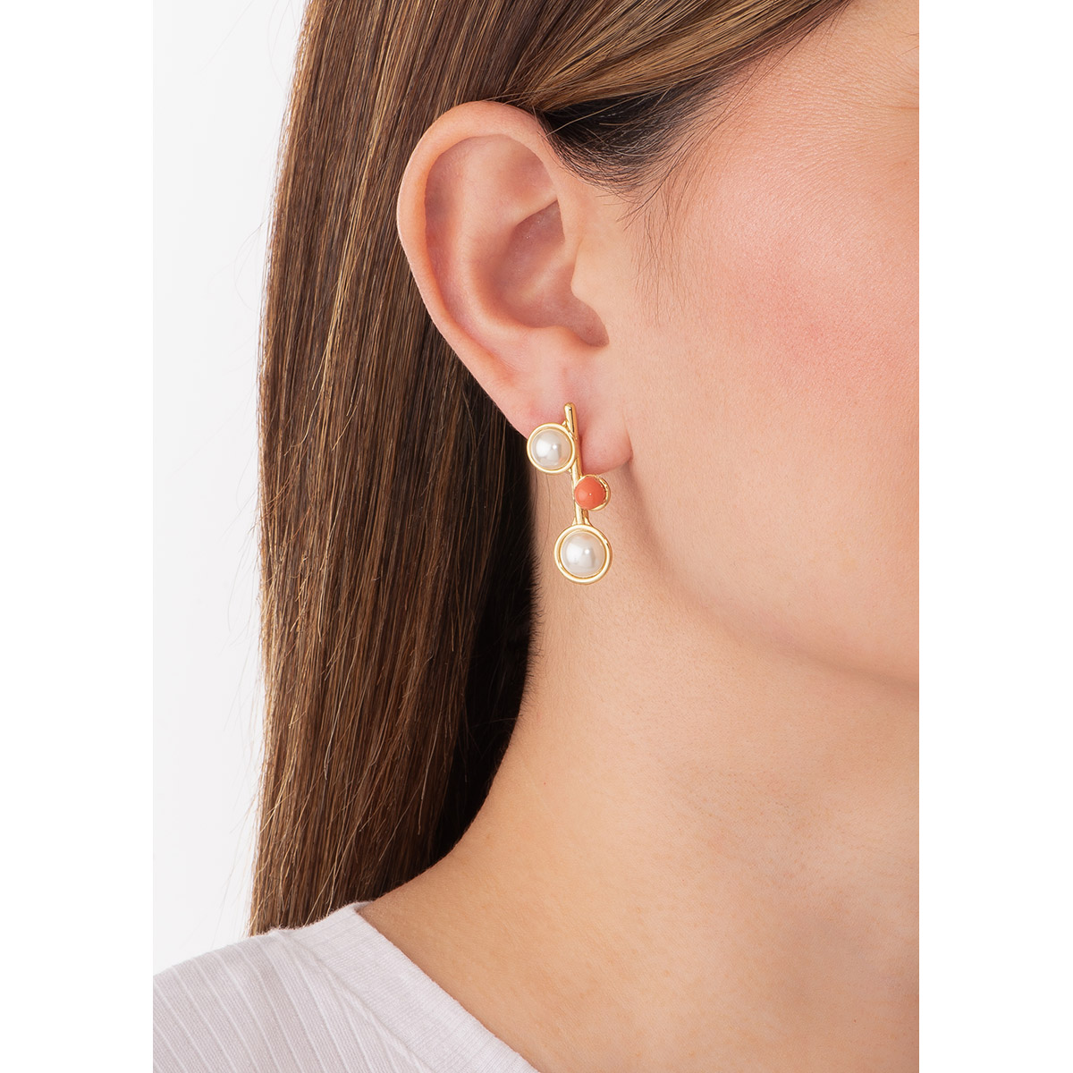 ARETES CON POSTE EN BAÑO DE ORO CON PERLA EN TONO CREMA Y TONO CORAL