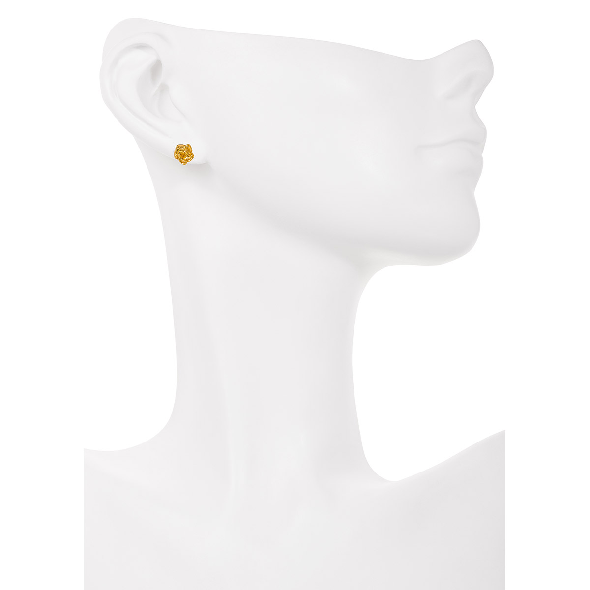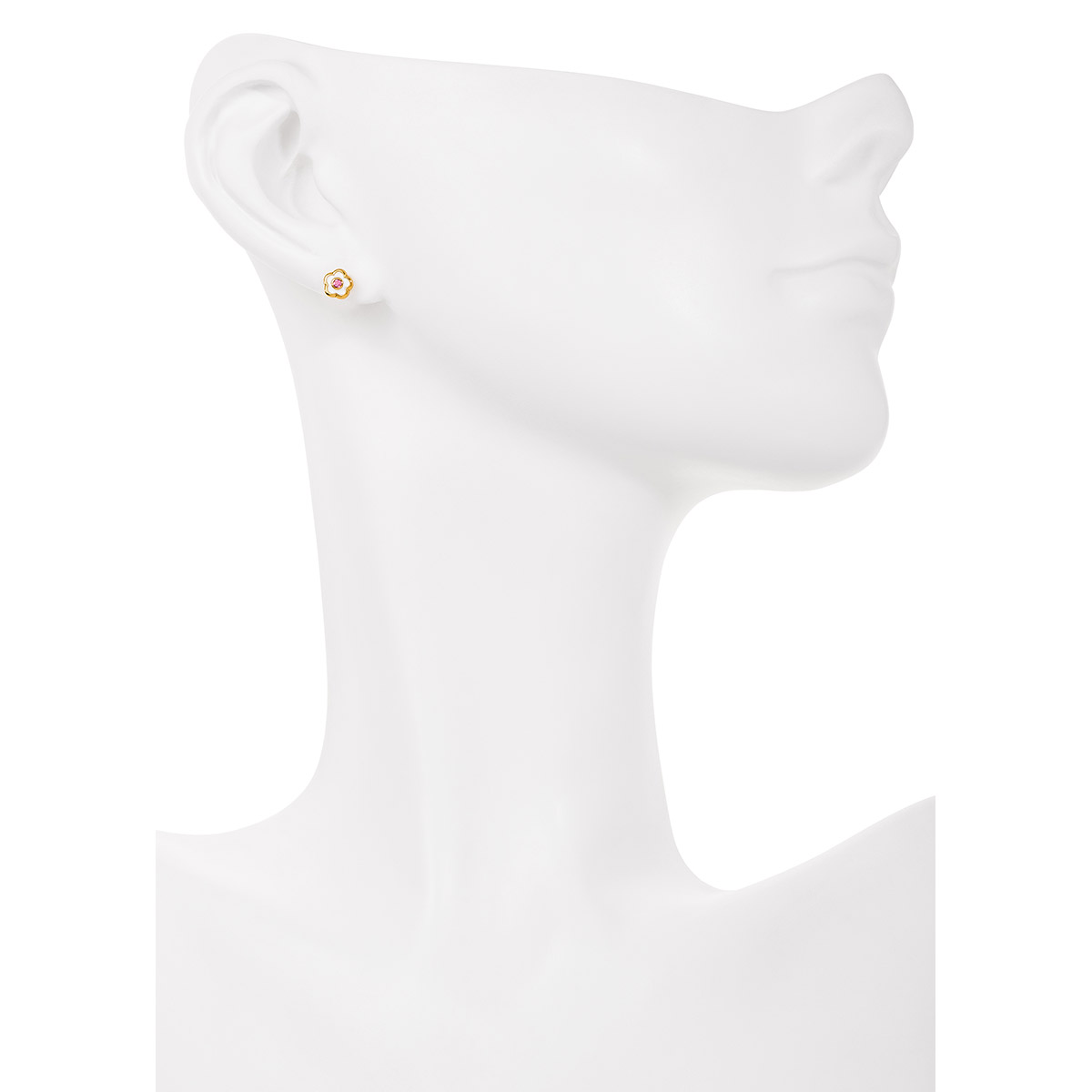 ARETES CON POSTE EN BAÑO DE ORO CON PIEDRA EN TONO ROSA CON PINTURA BLANCA