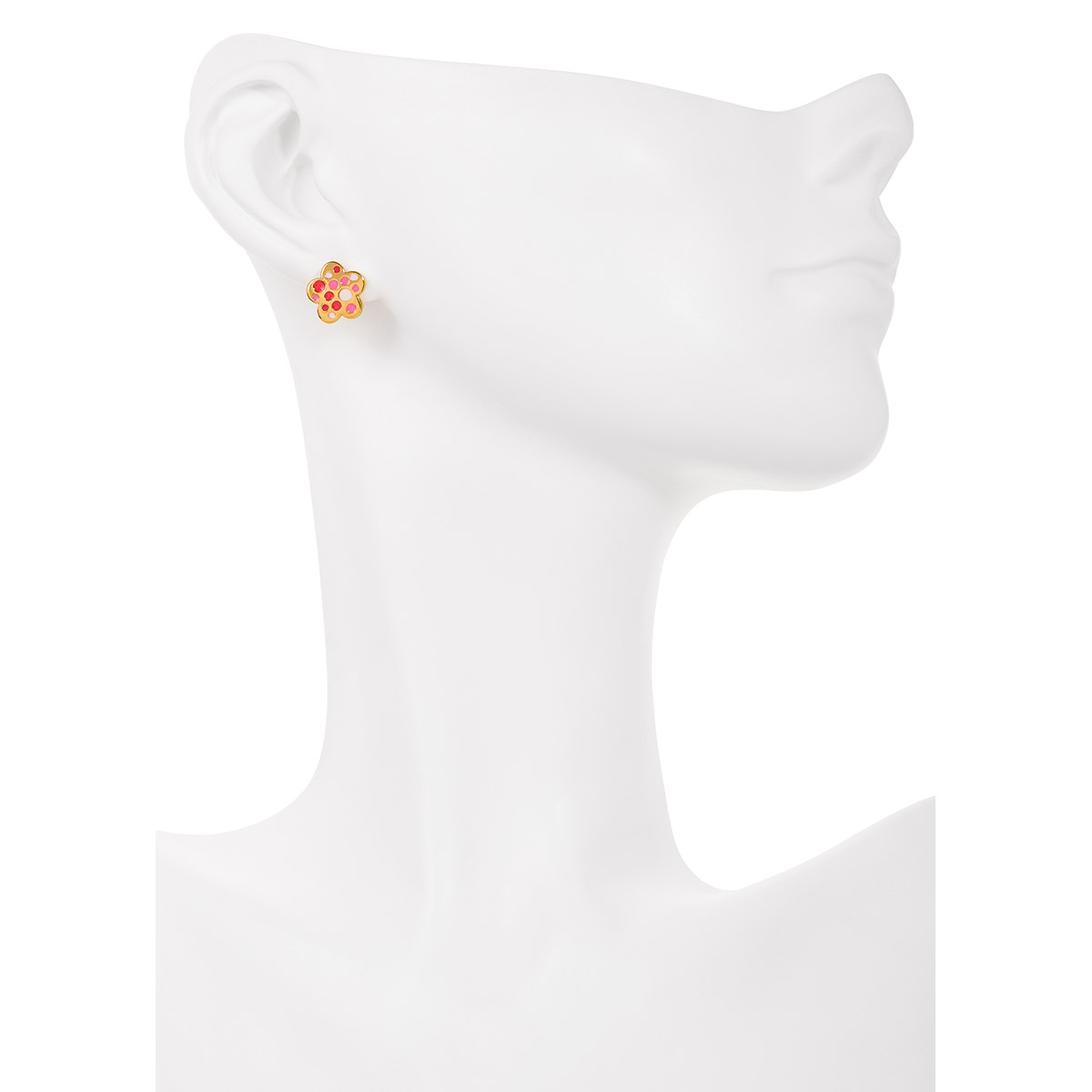 ARETES CON POSTE EN BAÑO DE ORO Y PINTURA EN TONO MAGENTA