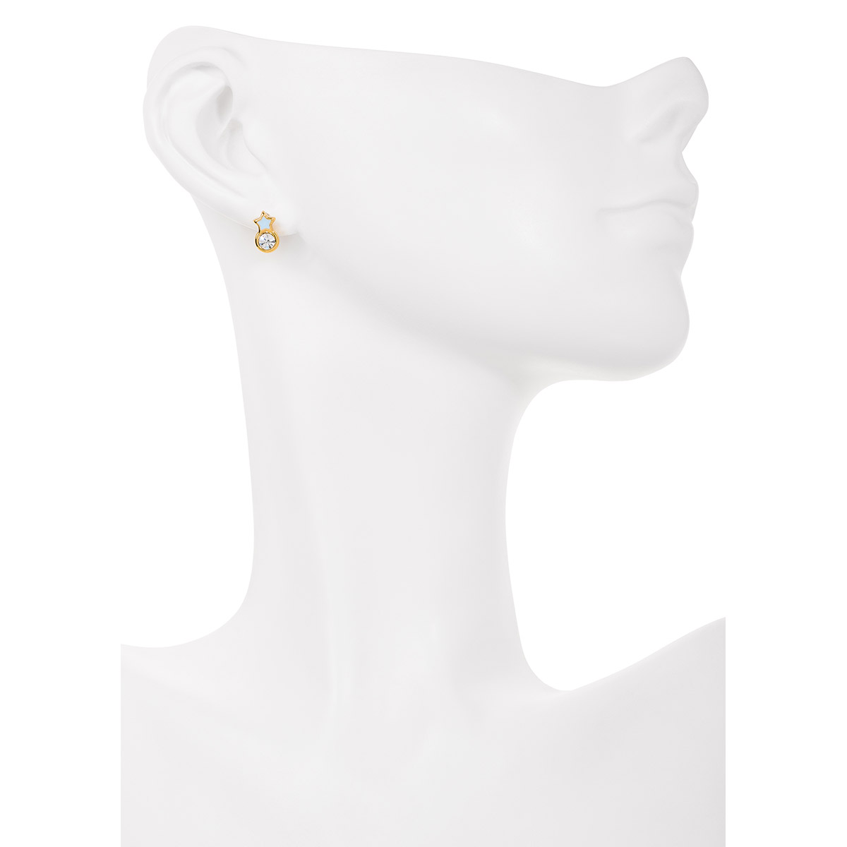 ARETES CON POSTE EN BAÑO DE ORO CON PIEDRA EN TONO CRISTAL Y PINTURA EN TONO AMARILLO