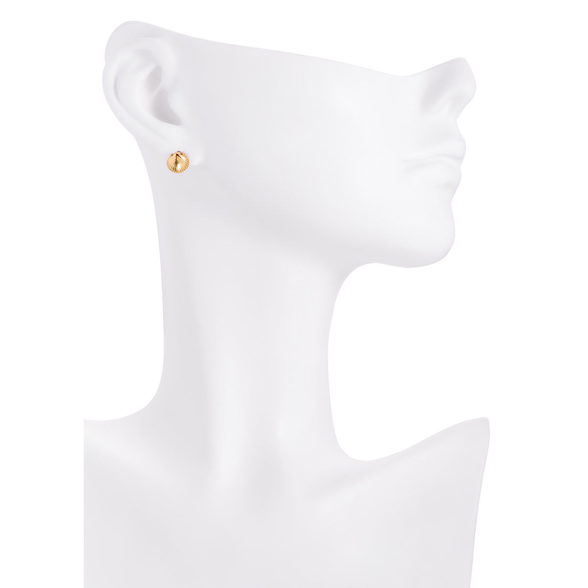 Hermosos aretes en baño de oro con forma de conchita marina.