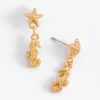 Las maravillas del océano se reflejan en estos aretes en baño de oro con diseño de estrella marina y caballito de mar en.