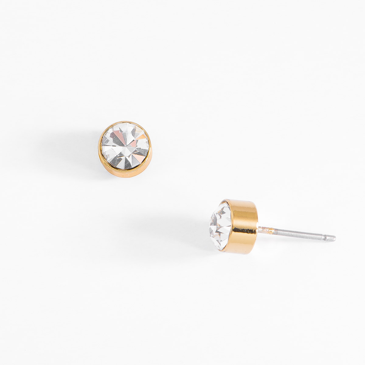 ARETES CON POSTE EN BAÑO DE ORO CON PIEDRA EN TONO CRISTAL