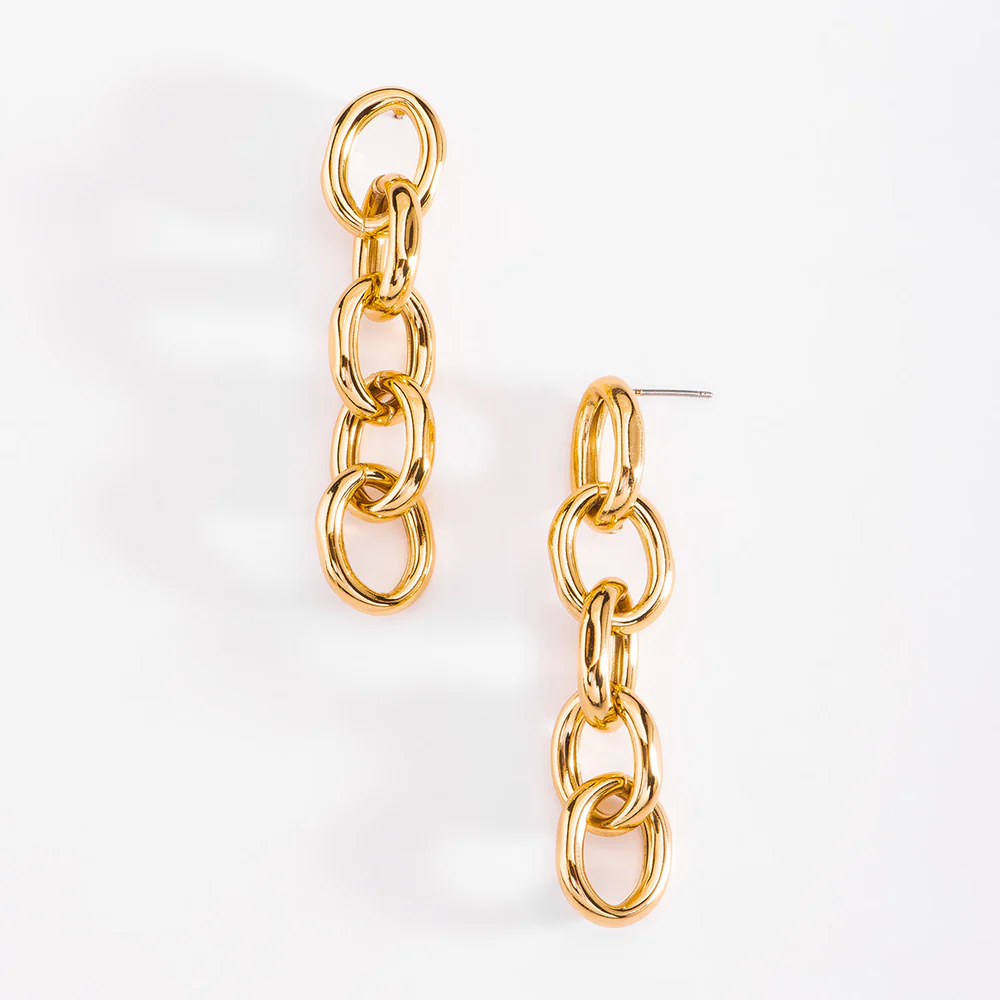 Descubre la elegancia moderna de estos aretes colgantes.Diseño chunky con eslabones