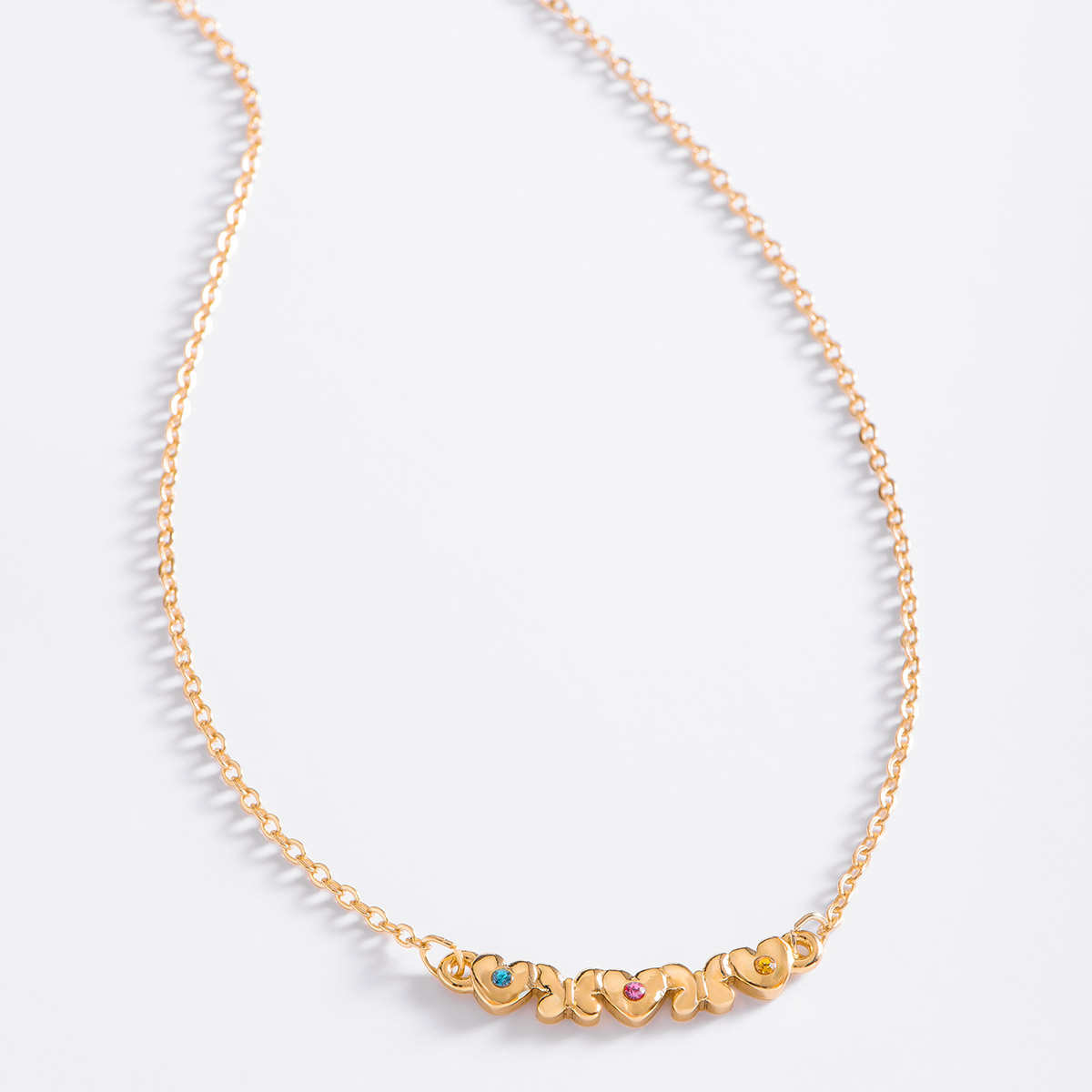 Collar de 34 cm + 5 cm de ext en baño de oro con piedras en tonos rosa, azul y amarillo