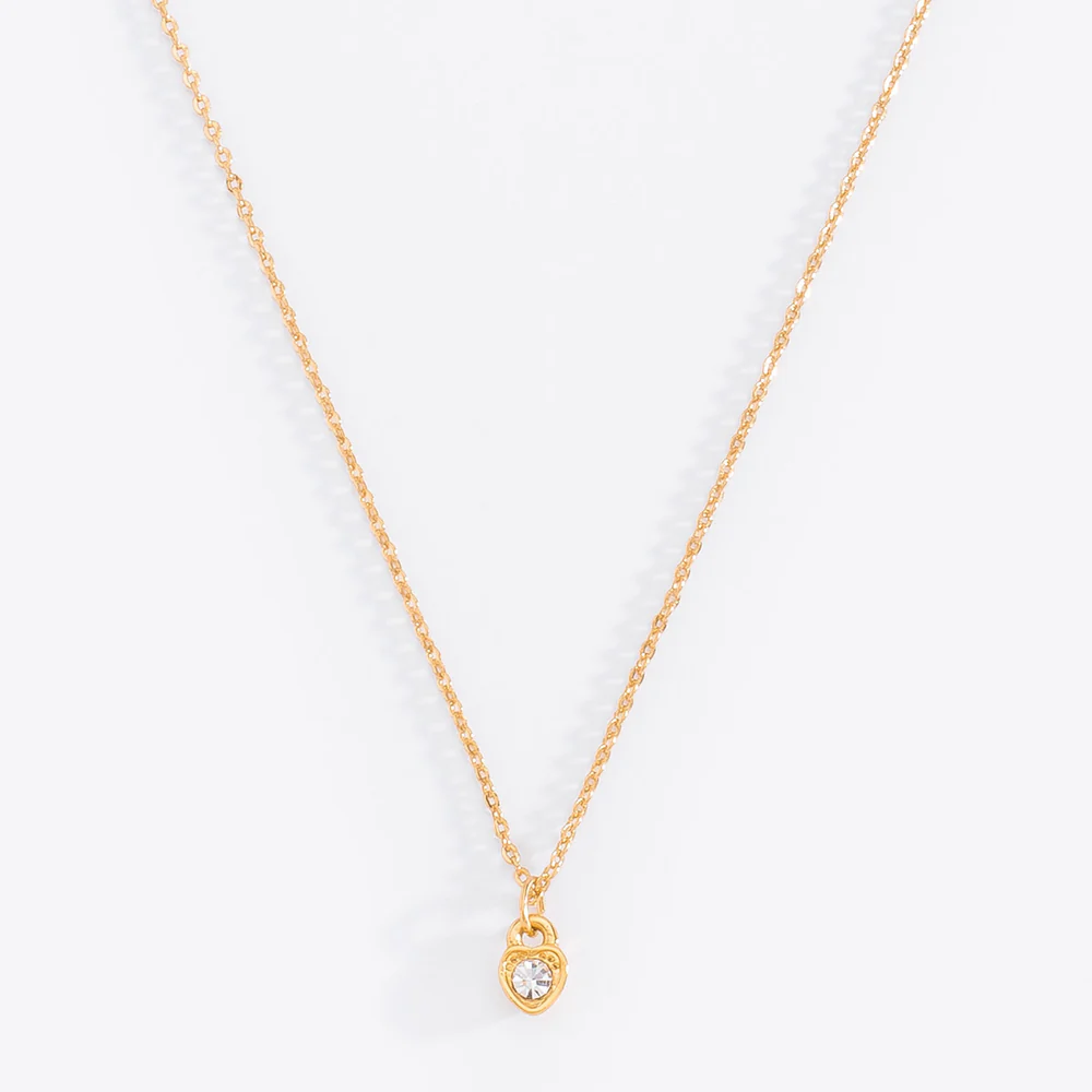 Collar con dije en baño de oro y piedra cristal que realza cualquier look. Elegancia y distinción para toda ocasión. Descúbrelo ahora.