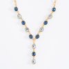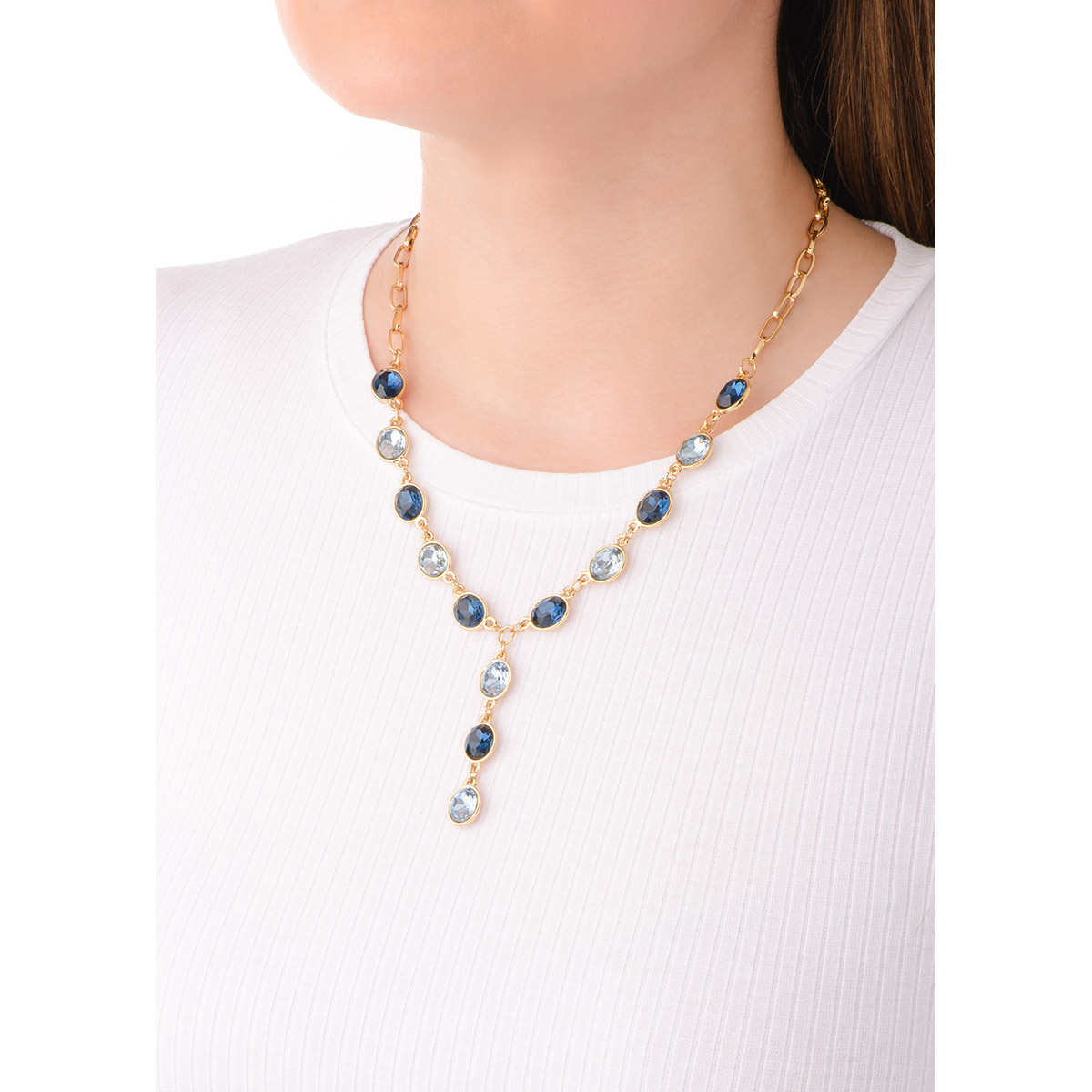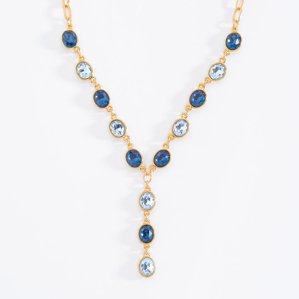 COLLAR EN BAÑO DE ORO DE 42 CM MÁS 10 CM DE EXTENSIÓN CON PIEDRA EN TONO AGUAMARINA