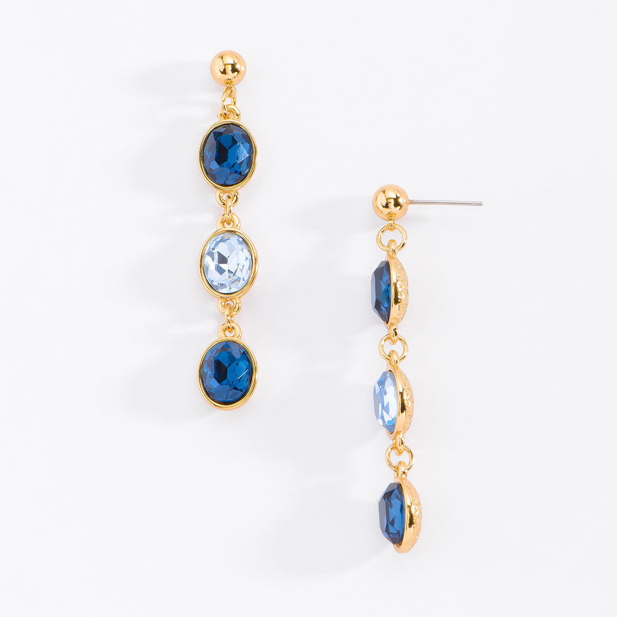 ARETES CON POSTE EN BAÑO DE ORO CON PIEDRA GOTA EN TONO AGUAMARINA Y MONTANA