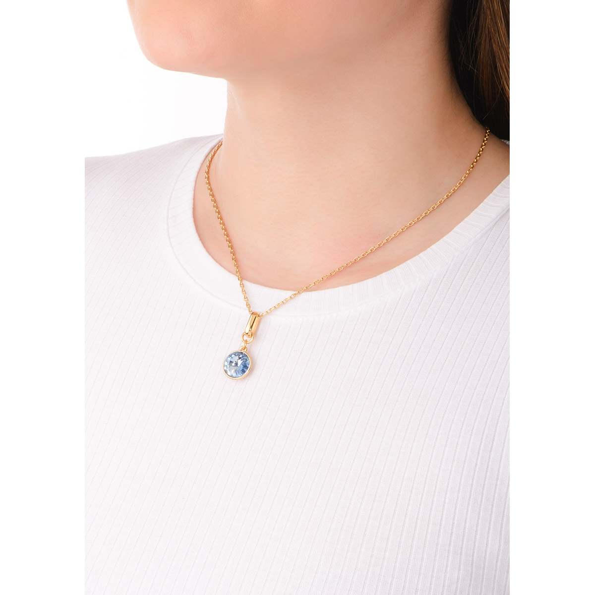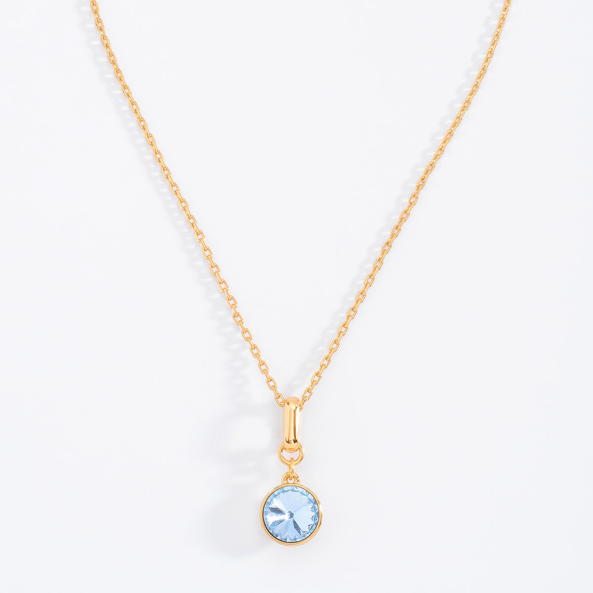 COLLAR EN BAÑO DE ORO DE 42 CM MÁS 10 CM DE EXTENSIÓN CON PIEDRA EN TONO AZUL