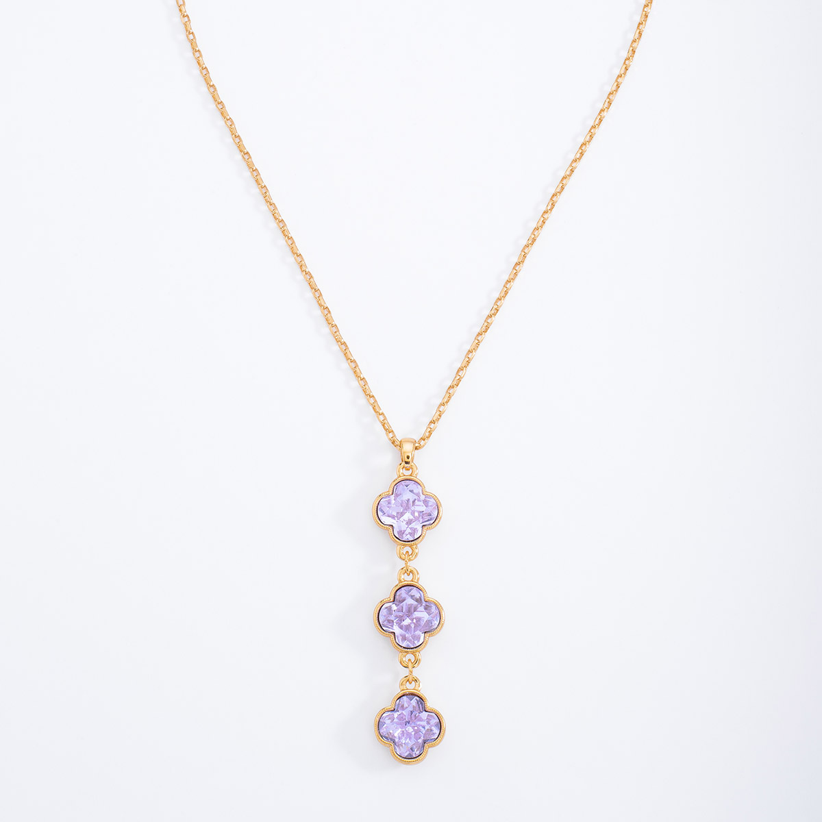 COLLAR EN BAÑO DE ORO DE 42 CM MÁS 10 CM DE EXTENSIÓN CON PIEDRA EN TONO LILA
