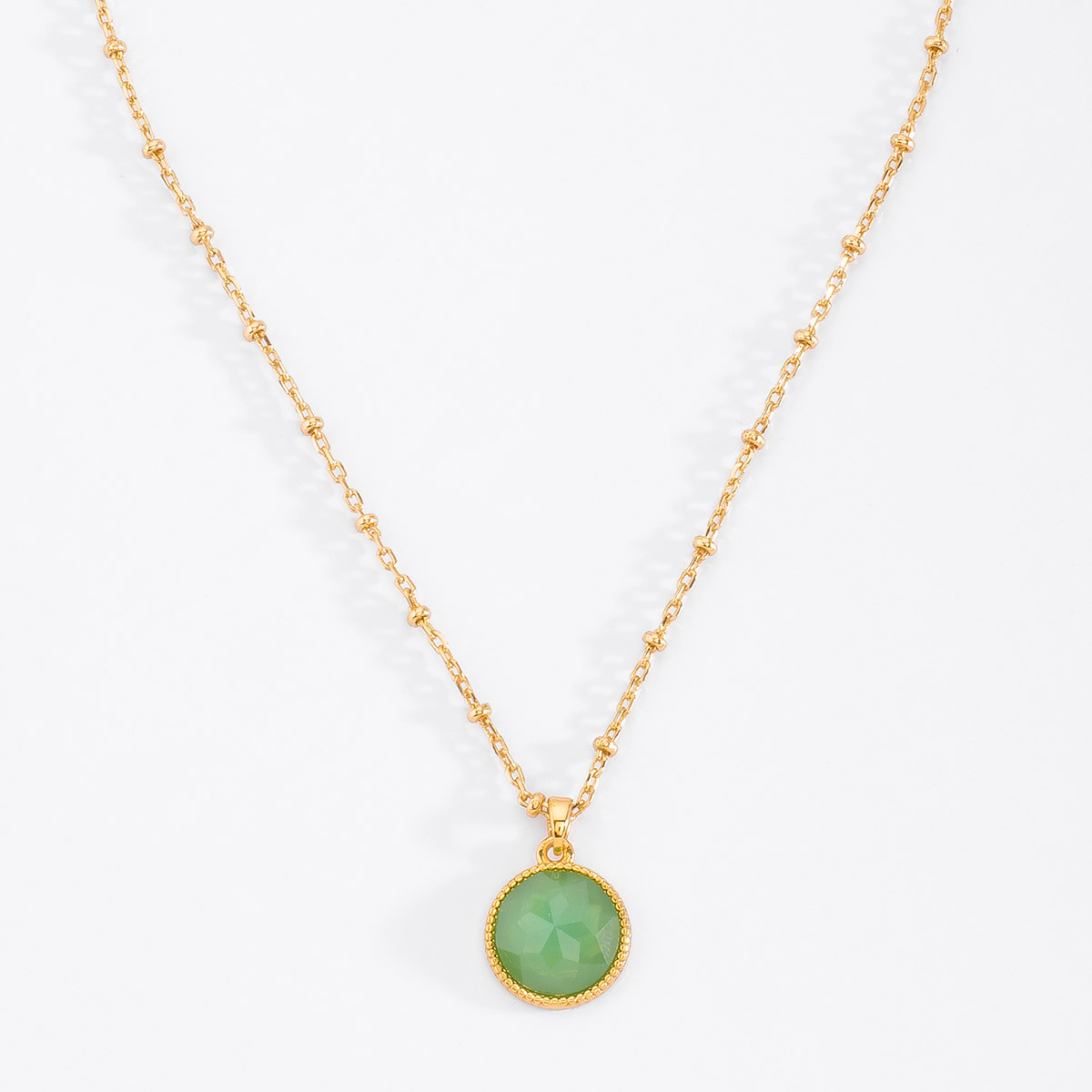 COLLAR EN BAÑO DE ORO DE 42 CM + 10 CM DE EXT. CON PIEDRA EN TONO VERDE