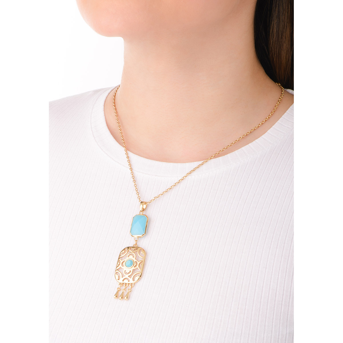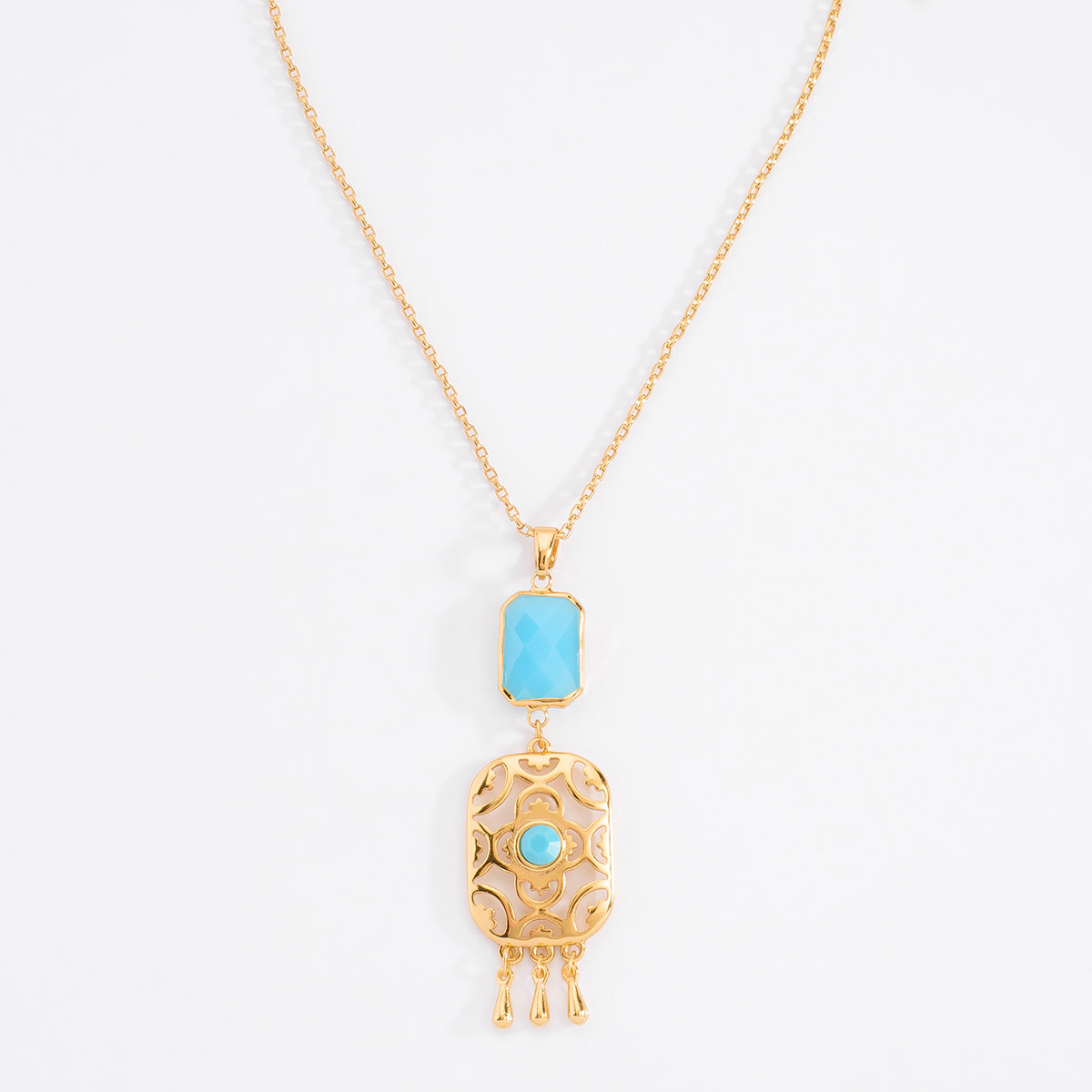 COLLAR EN BAÑO DE ORO DE 42 CM MÁS 10 CM DE EXTENSIÓN CON PIEDRA EN COLOR TURQUESA