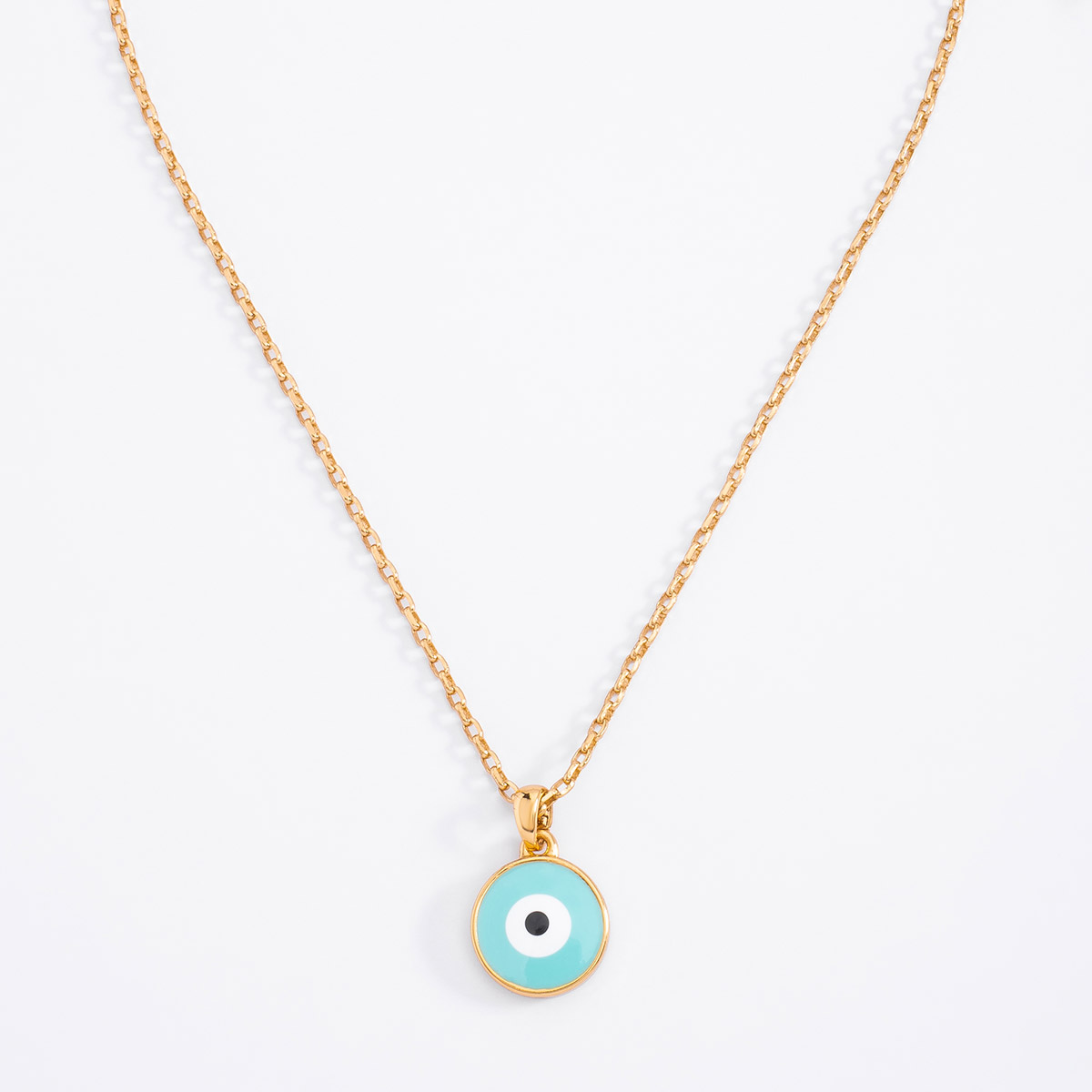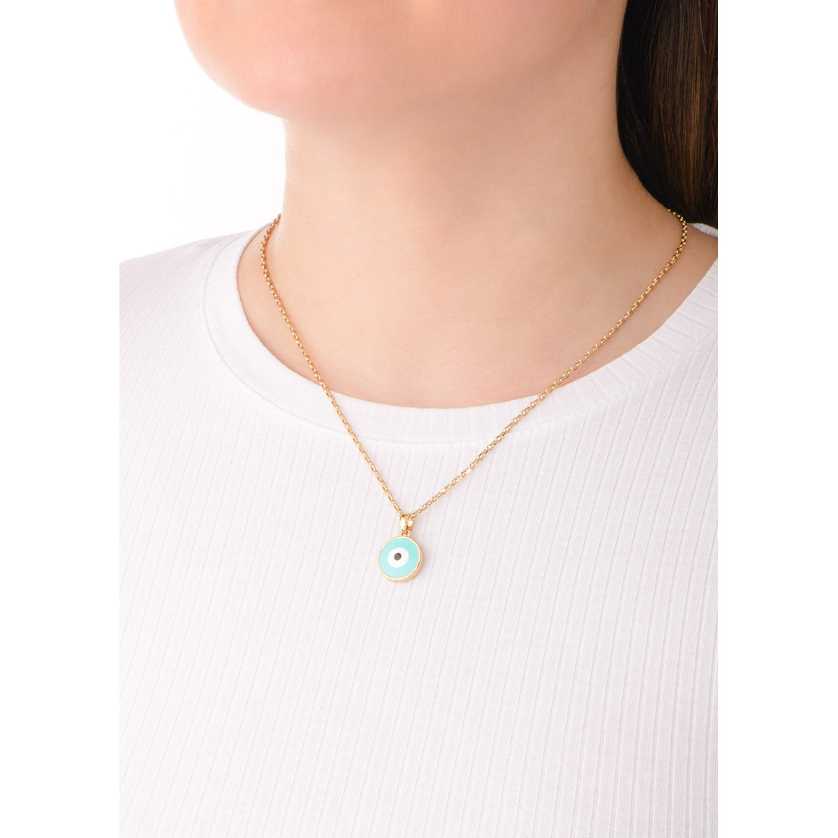 COLLAR EN BAÑO DE ORO DE 42 CM MÁS 10 CM DE EXTENSIÓN CON ESMALTE EN TONO AQUA