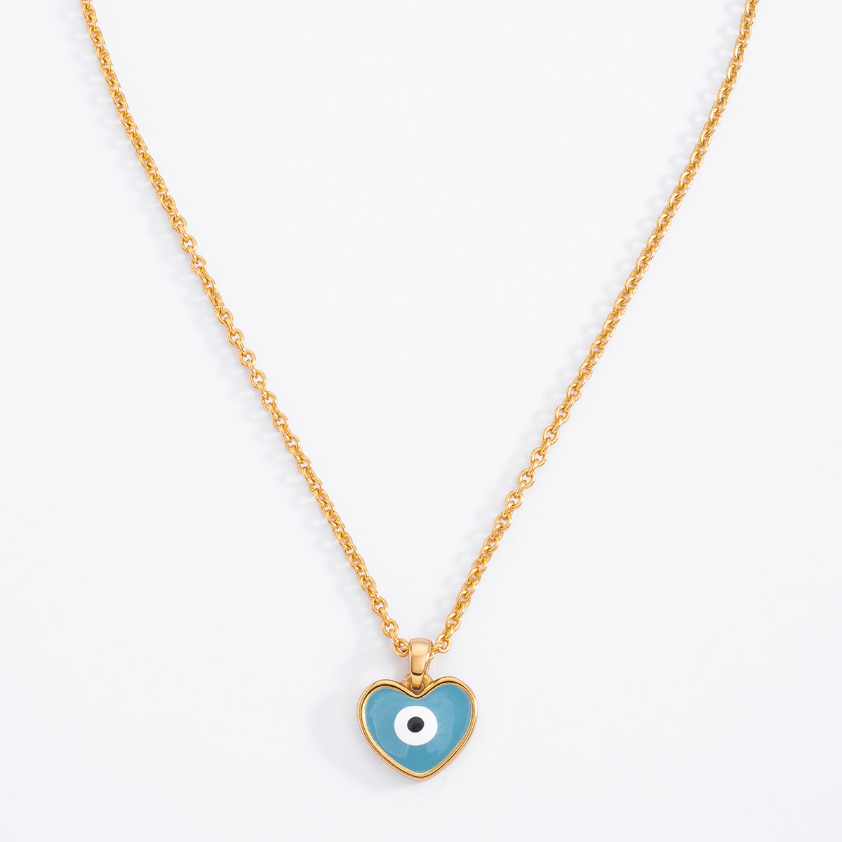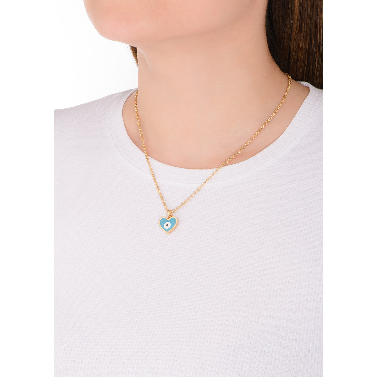 COLLAR EN BAÑO DE ORO DE 42 CM + 10 CM DE EXTENSIÓN CON ESMALTE EN TONO AZUL, NEGRO Y BLANCO
