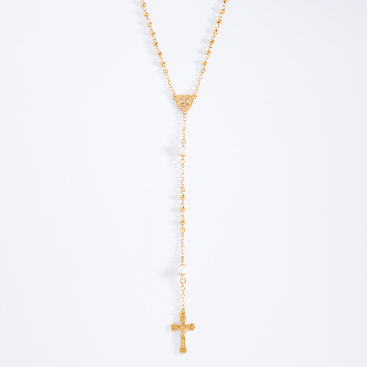 ROSARIO EN BAÑO DE ORO DE 59 CM CON PERLAS COLOR CREMA