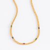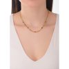 Precioso collar de cadena en baño de oro, adornado con piedras Diamonice en tono esmeralda y rubí.