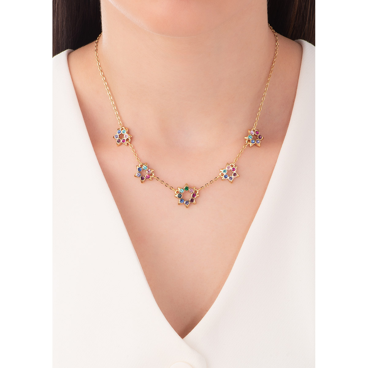 Collar de 40 cm + 10 cm de ext, en baño de oro, con piedras en varios tonos.