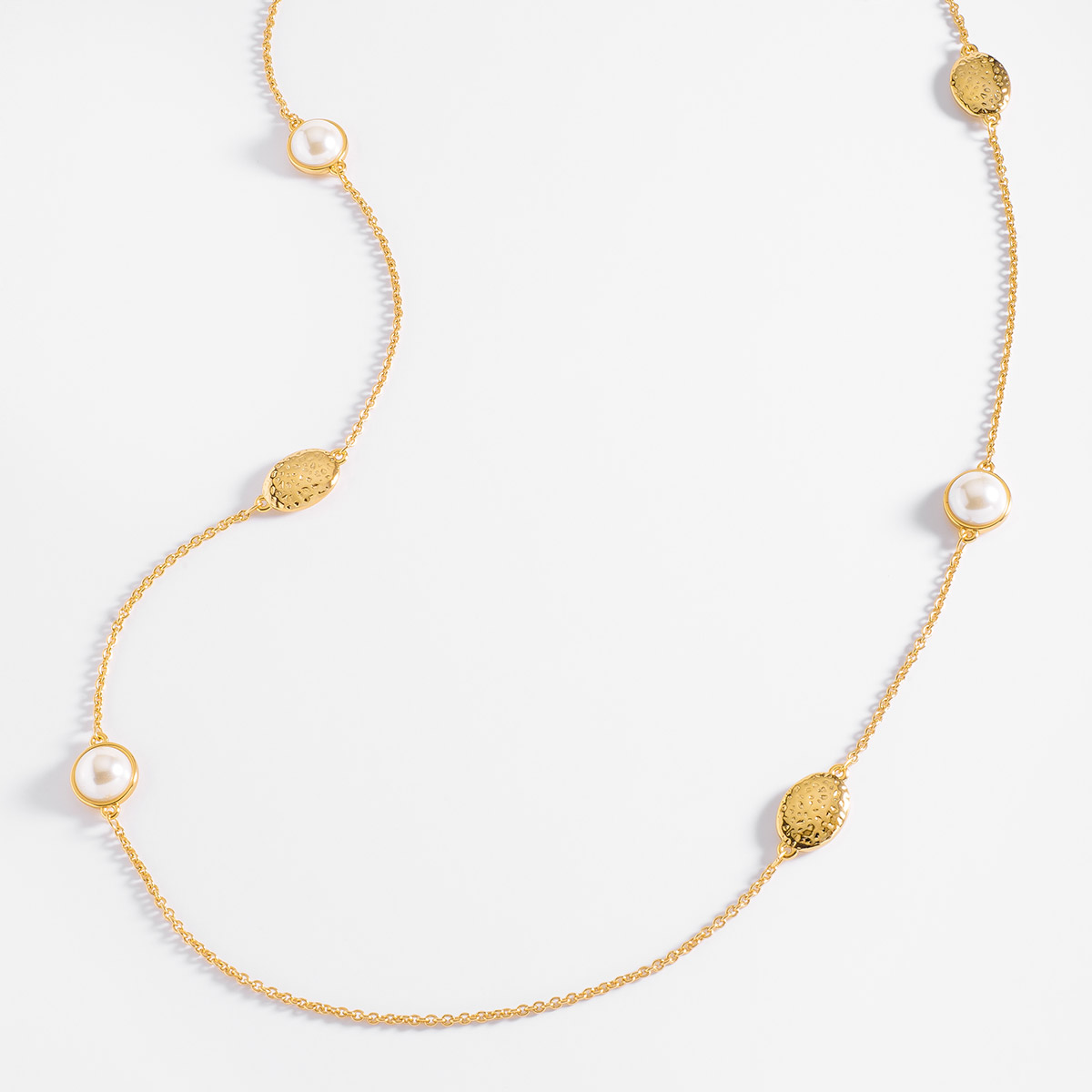 Moderno collar con perlas en tono crema y texturas en baño de oro.