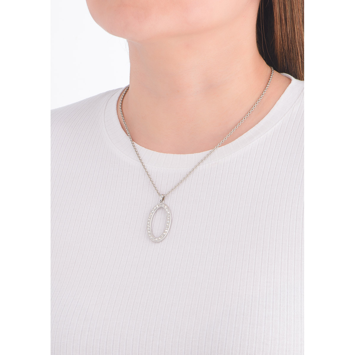 COLLAR DE 45 CM MAS 10 DE EXTENSIÓN EN BAÑO DE PLATINO CON PIEDRA EN TONO CRISTAL