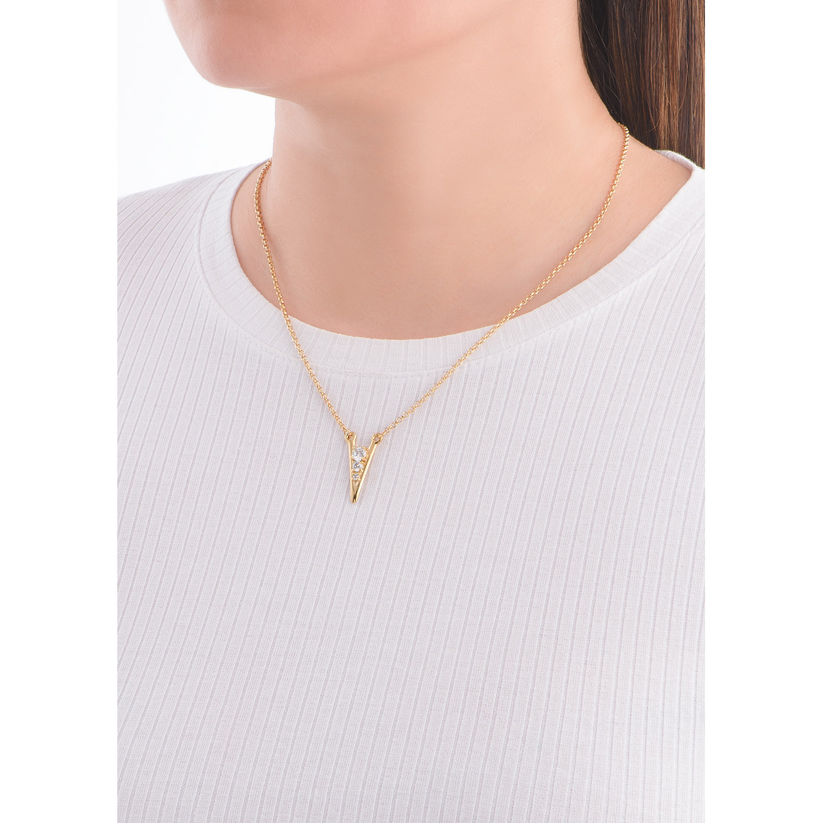 COLLAR DE 42 CM MÁS 10 CM DE EXTENSIÓN EN BAÑO DE ORO CON PIEDRA DIAMONICE EN TONO CRISTAL