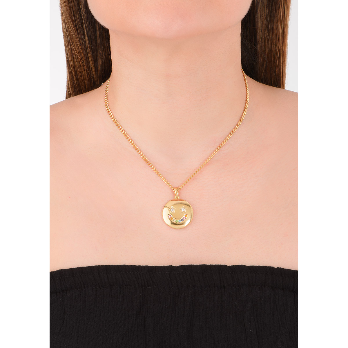Collar de 42 cm más 10 cm de extensión en baño de oro con piedras en varios tonos