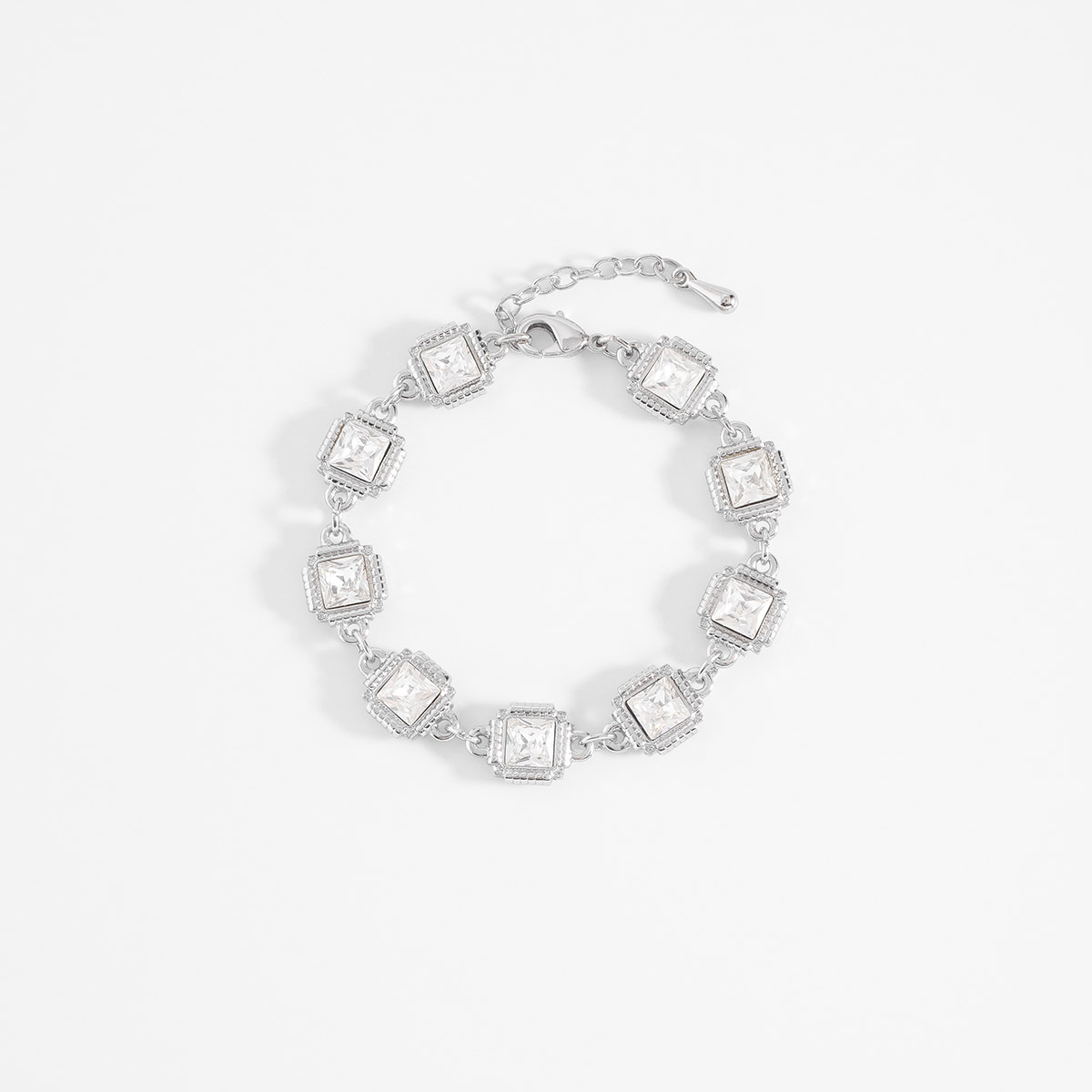 PULSERA EN BAÑO DE PLATINO DE 17 CM + 3 CM DE EXT. CON PIEDRAS DE CRISTAL