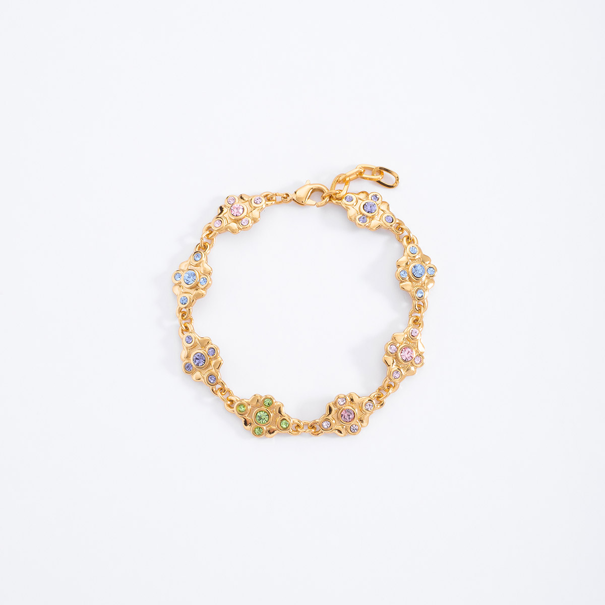 PULSERA EN BAÑO DE ORO DE 17 CM MAS 3 CM DE EXTENSIÓN CON PIEDRA DE COLORES