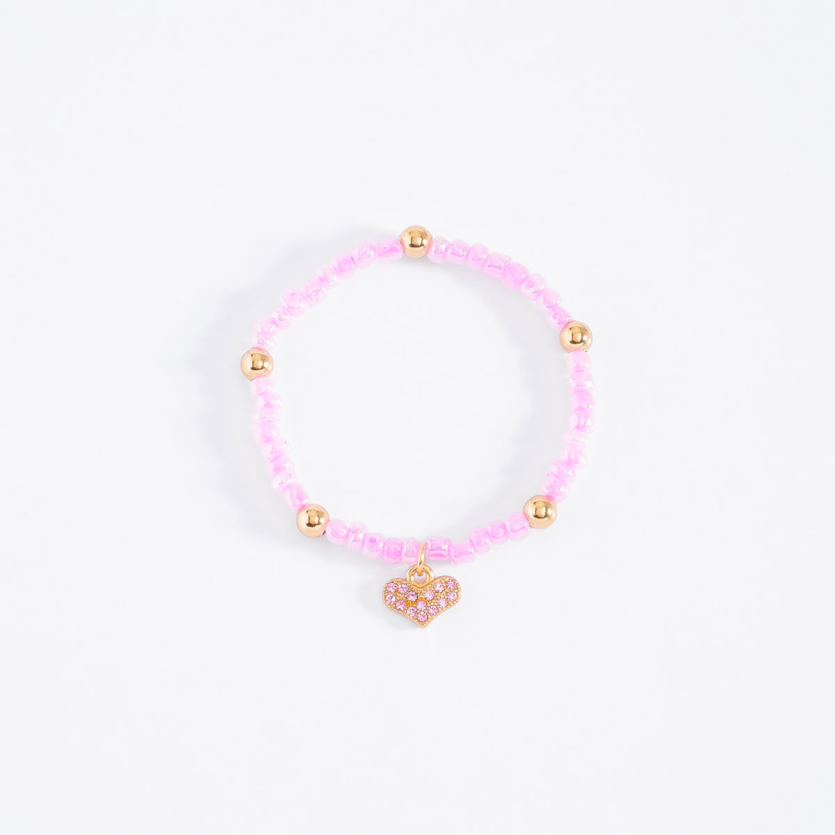 PULSERA AJUSTABLE EN BAÑO DE ORO CON CUENTAS TONO ROSA Y PIEDRAS TONO LIGHT ROSE