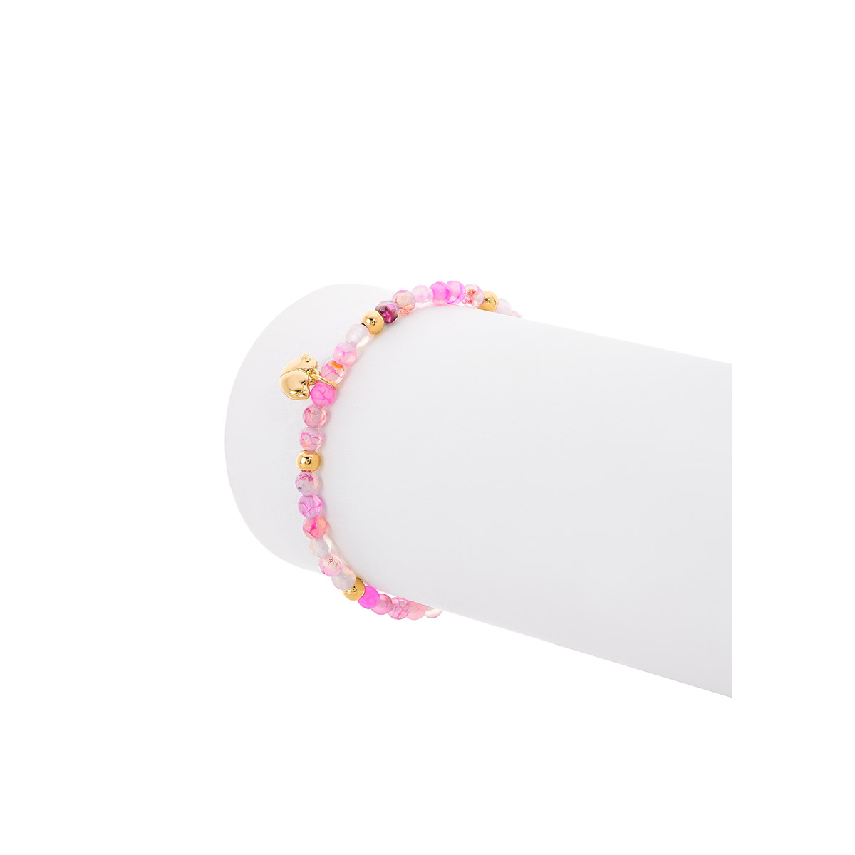 PULSERA AJUSTABLE EN BAÑO DE ORO CON CUENTAS EN TONO FUCHSIA