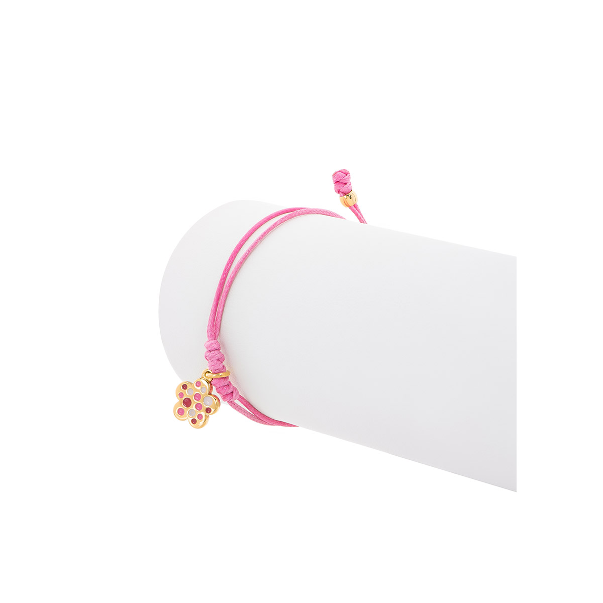PULSERA AJUSTABLE EN BAÑO DE ORO CON CORDÓN COLOR ROSA CON PINTURA EN TONO ROSA